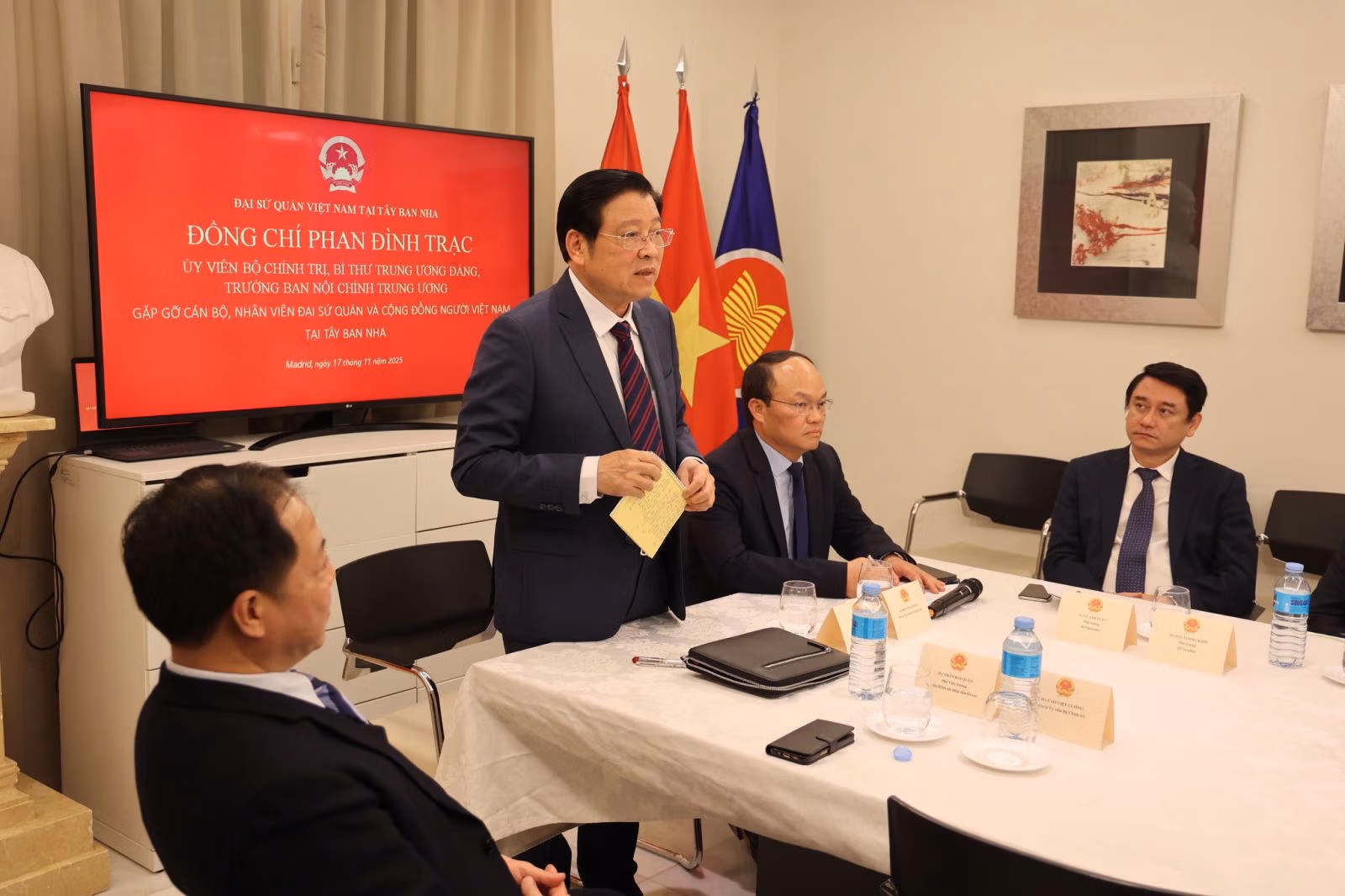 Từ ngày 17-21/11/2025, Đoàn đại biểu Đảng Cộng sản Việt Nam do đồng chí Phan Đình Trạc, Ủy viên Bộ Chính trị, Bí thư Trung ương Đảng, Trưởng Ban Nội chính Trung ương, Phó Trưởng Ban Thường trực Ban Chỉ đạo Trung ương về phòng, chống tham nhũng, lãng phí, tiêu cực, Phó Trưởng Ban Thường trực Ban Chỉ đạo Cải cách tư pháp Trung ương dẫn đầu, đã thăm và làm việc tại Tây Ban Nha.