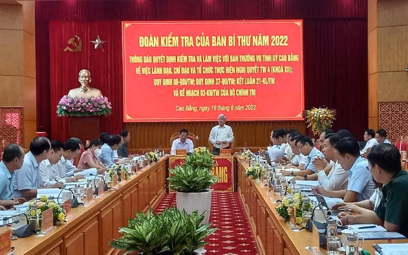 Ngày 18/8, Đoàn kiểm tra của Ban Bí thư do Bí thư Trung ương Đảng, Chủ tịch UBTƯ MTTQ Việt Nam Đỗ Văn Chiến làm Trưởng đoàn đã làm việc với Ban Thường vụ Tỉnh ủy Cao Bằng, thông báo Quyết định, kế hoạch và lịch làm việc của Đoàn kiểm tra.