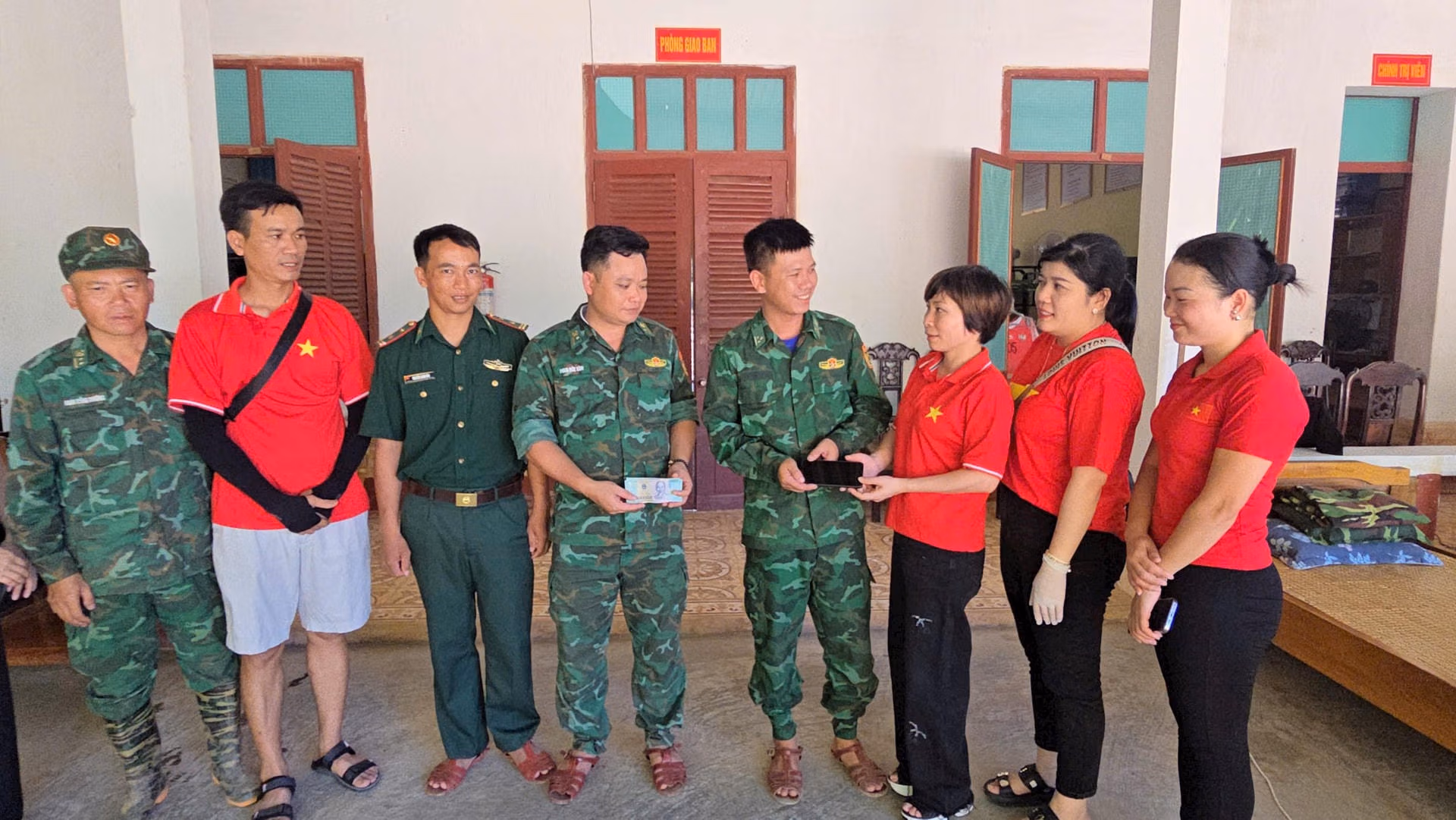 "Trước khi lên đường, một mạnh thường quân đã gửi tôi chiếc điện thoại với lời nhắn nhủ tặng lại cho ai đó thật sự cần. Chiếc điện thoại ấy đã được tặng cho chiến sĩ Nguyễn Cảnh Tuấn ở Đồn Biên phòng Mỹ Lý bị mất điện thoại khi đang làm nhiệm vụ khắc phục thiệt hại mưa lũ, giúp chiến sĩ Tuấn liên lạc với người thân, gia đình, đồng đội... Và còn rất nhiều câu chuyện cảm động trong hành trình này khiến chúng tôi ghi nhớ mãi không quên", chị Thủy kể.