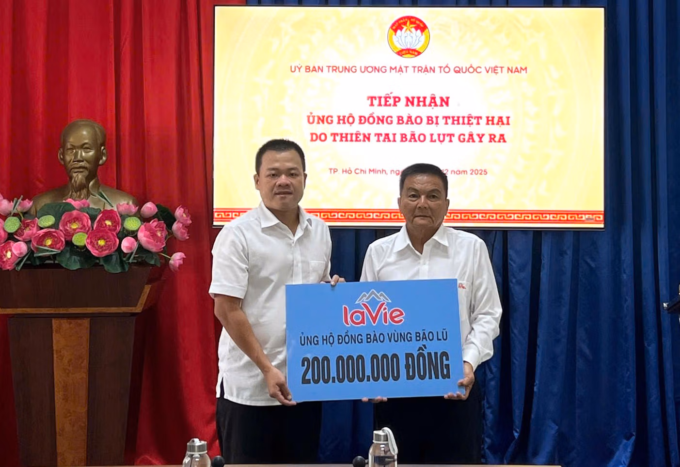 Theo đó, Công ty TNHH La Vie do ông Đỗ Hữu Hào (Phó Tổng Giám đốc) làm đại diện trao bảng tượng trưng số tiền ủng hộ 200 triệu đồng; Công ty Smart-Link Việt Nam do ông Huỳnh Trung Viễn (Phó phòng marketing) làm đại diện, kết hợp cùng nhãn hàng Joyoung do bà Nguyễn Thị Thu Nhi (Đại sứ thương hiệu) đã trao bảng trượng trưng ủng hộ 600 bình đun siêu tốc, trị giá khoảng 300 triệu đồng.