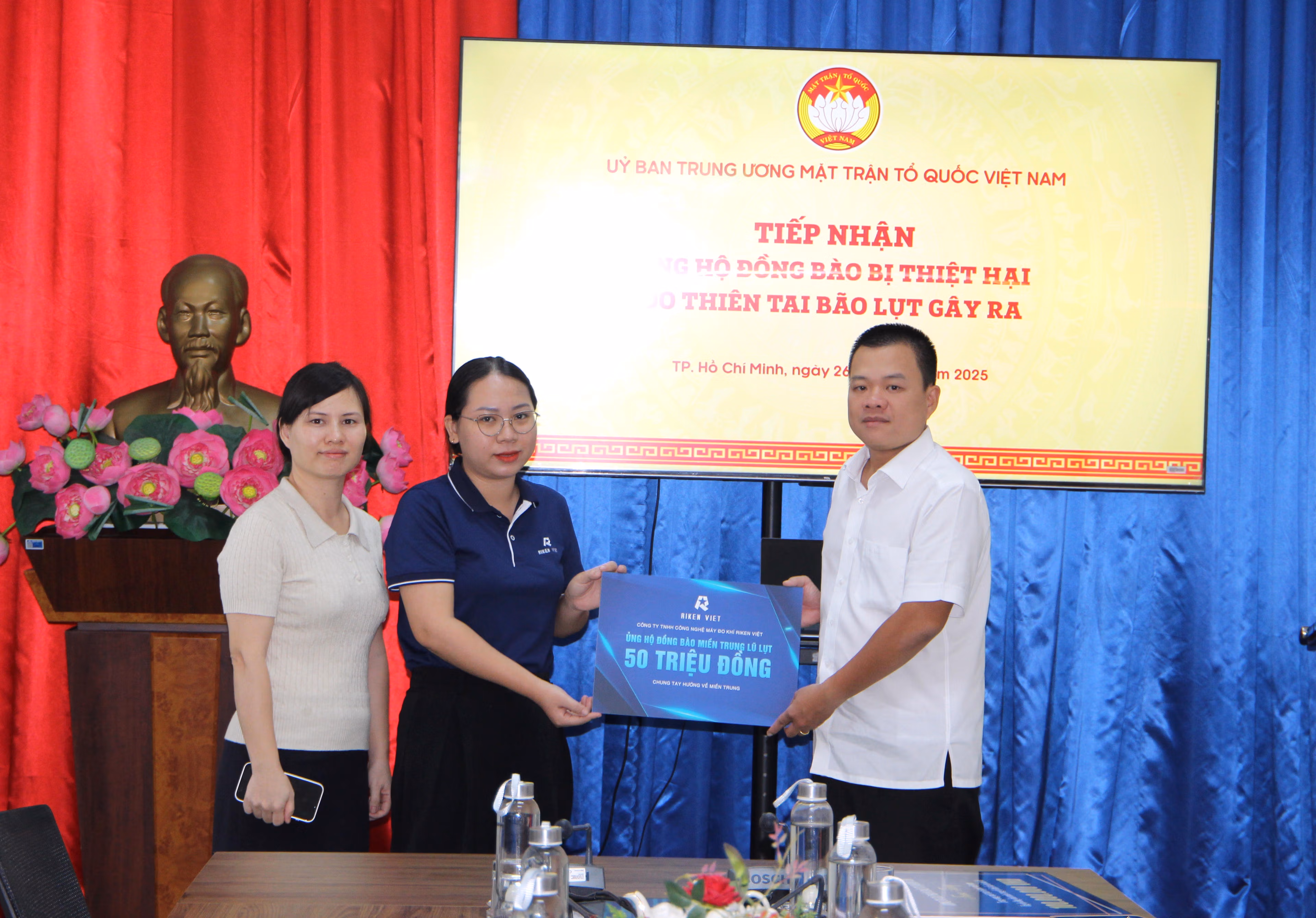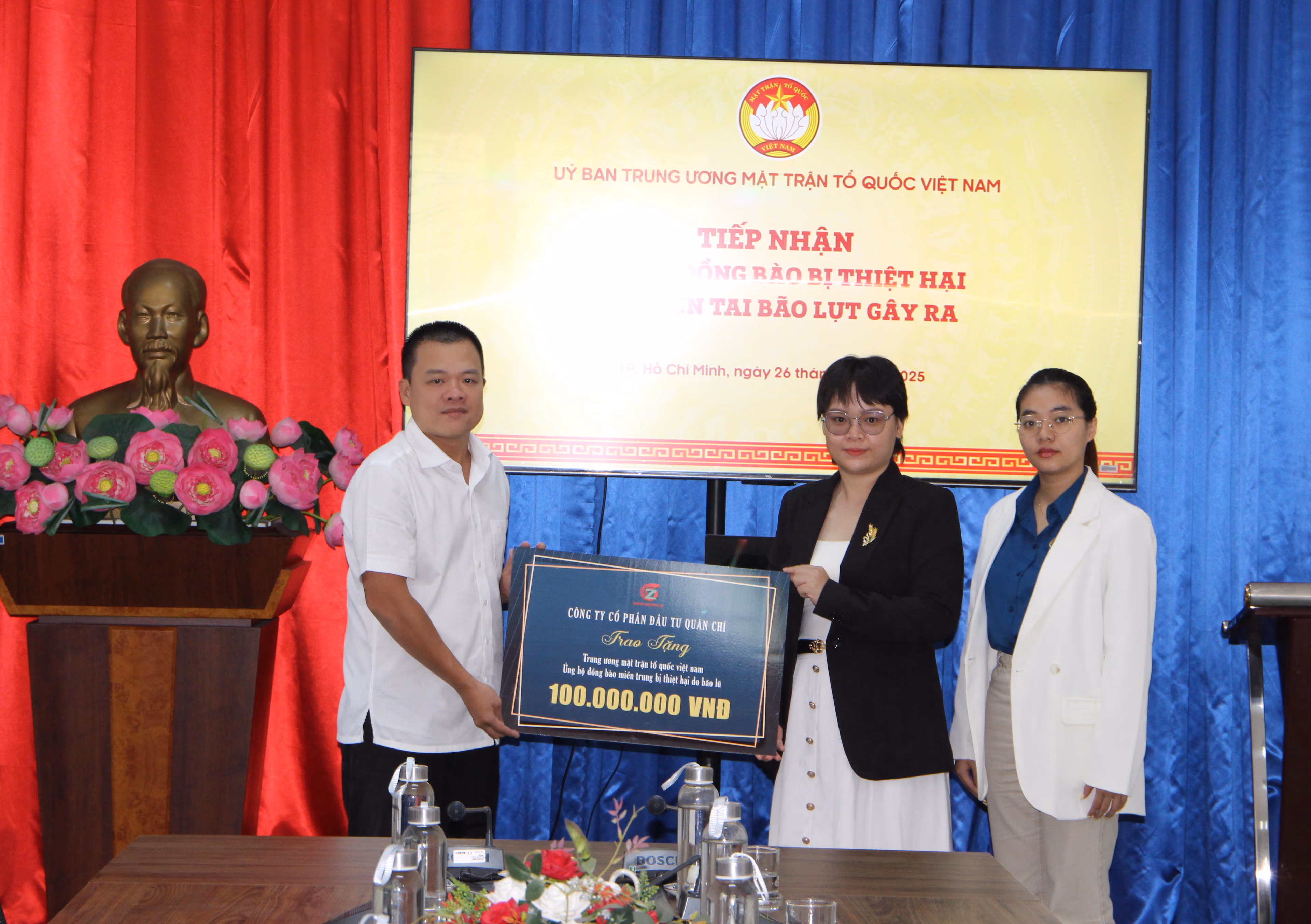 Ngày 26/11, các doanh nghiệp đã đến Phòng Quản trị 2, thuộc Văn phòng Uỷ ban Trung ương Mặt trận Tổ quốc Việt Nam tại TP Hồ Chí Minh để trao kinh phí ủng hộ đồng bào các địa phương vừa chịu ảnh hưởng nặng nề bởi các đợt thiên tai.