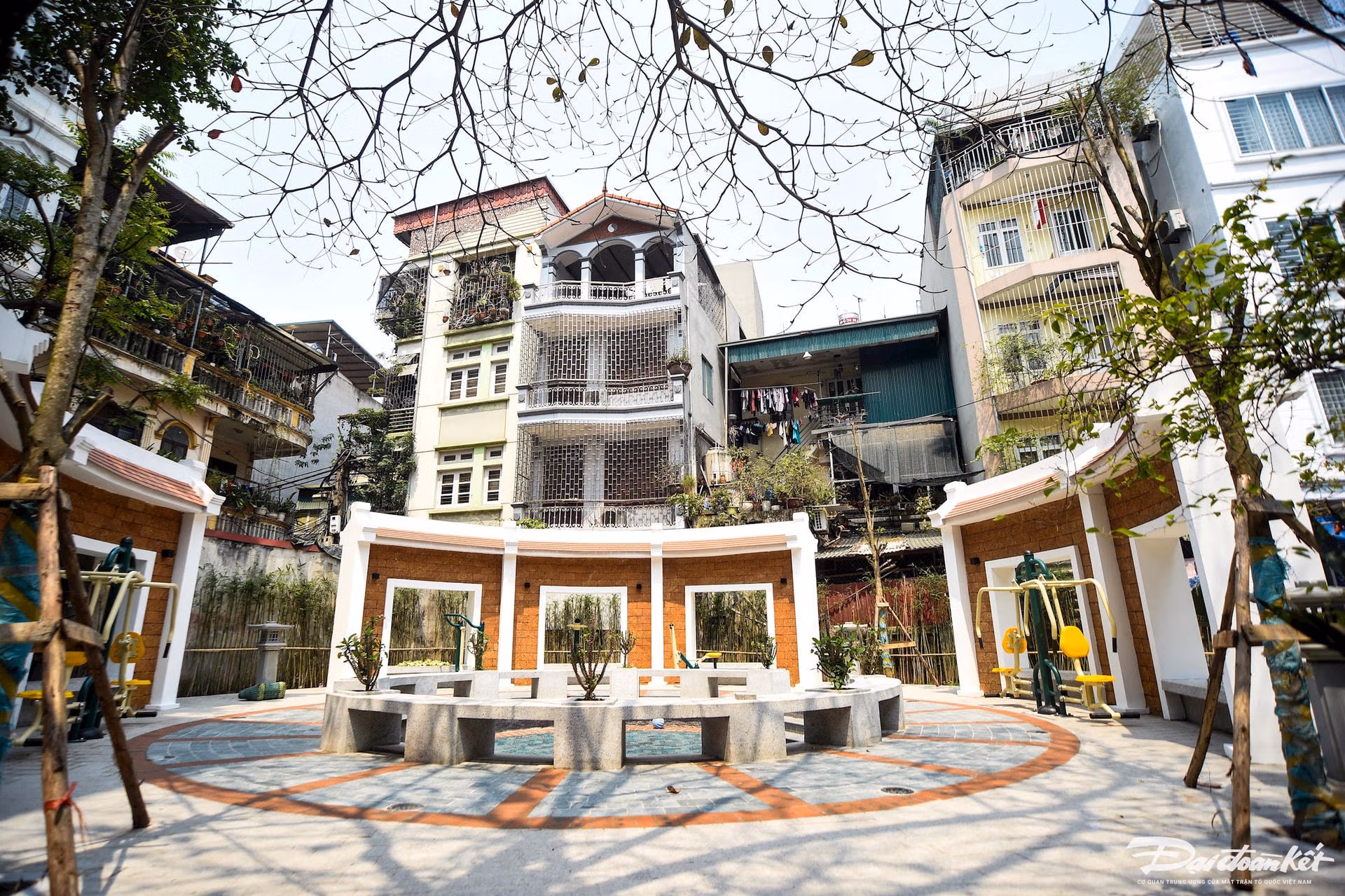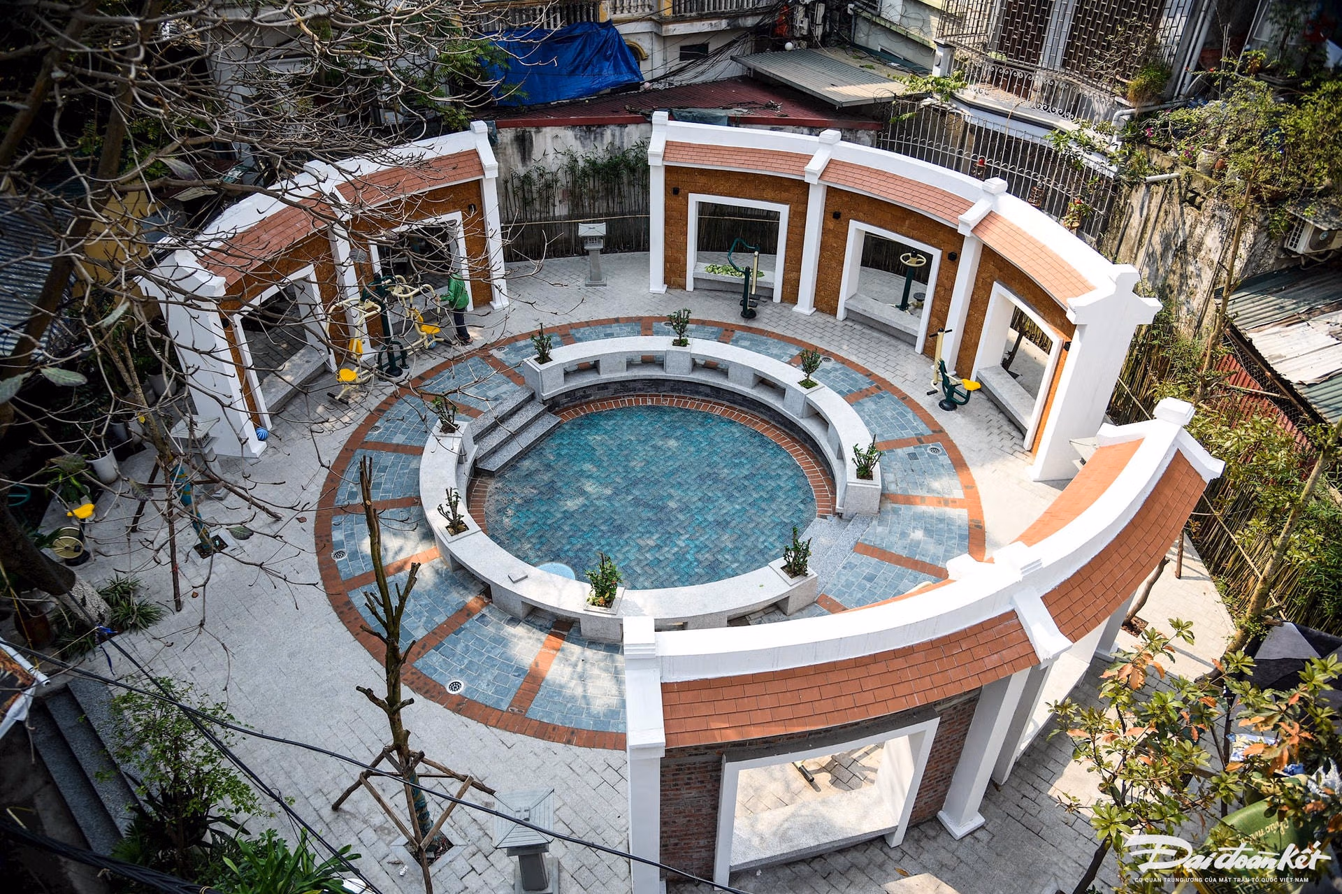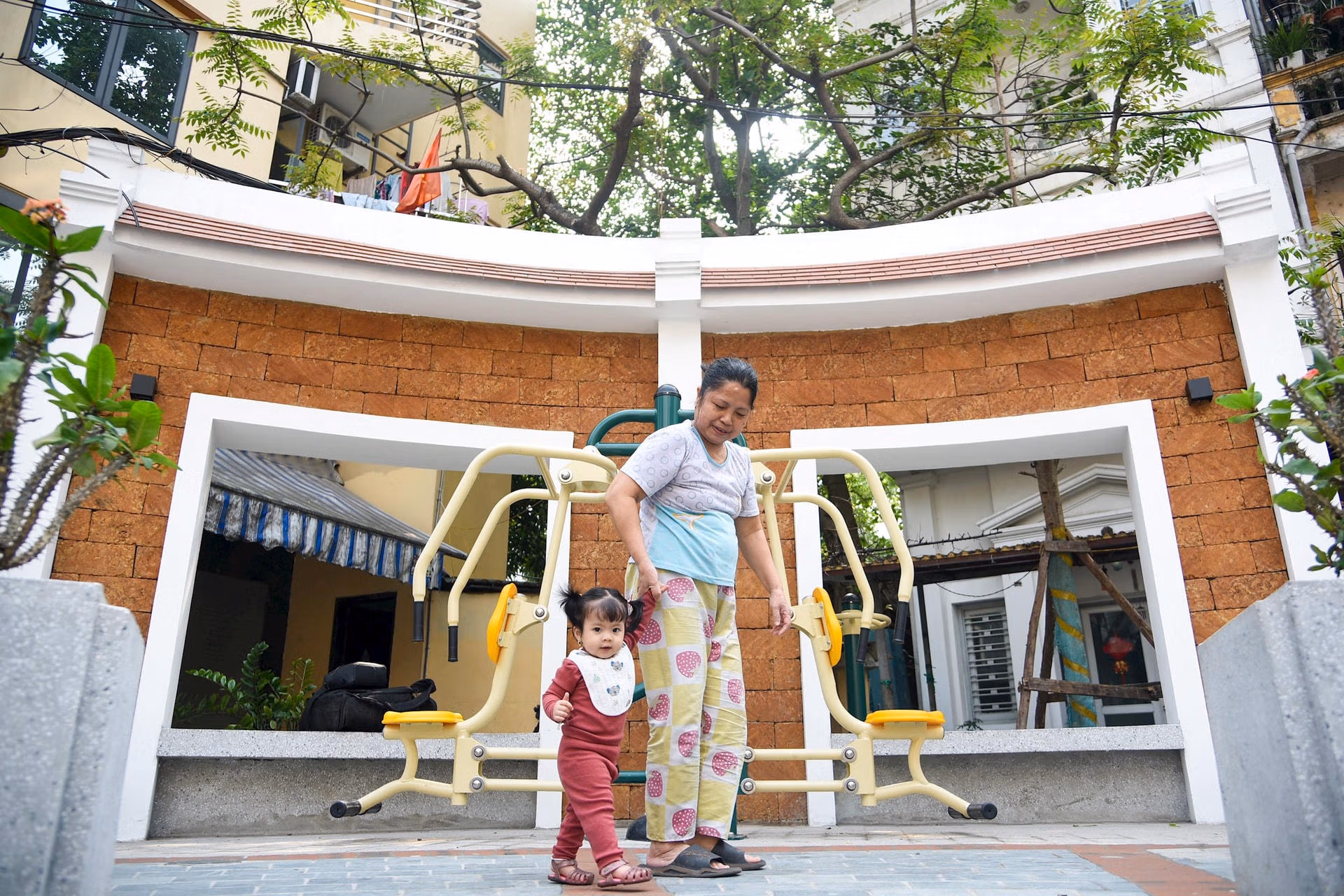 Độc đáo khu vui chơi cải tạo từ 'giếng làng' giữa lòng Thủ đô Thứ Năm 21/03/2024 19:31 (GMT+7) Với mong muốn để thế hệ trẻ hiểu hơn về hình ảnh làng quê Việt Nam xưa, UBND quận Ba Đình đã cải tạo một chiếc "giếng làng" thành sân chơi cộng đồng. Thực hiện chương trình cải tạo, chỉnh trang văn minh đô thị, kết hợp với việc gìn giữ, bảo tồn các giá trị văn hóa cổ xưa, quận Ba Đình (Hà Nội) vừa cải tạo, phục dựng hình ảnh giếng làng ở Tổ dân phố 3C phường Liễu Giai (ngõ 67 Văn Cao).Theo UBND quận Ba Đình, trong lịch sử, quận Ba Đình nằm ở phía tây Kinh thành Thăng Long. Trên địa bàn có nhiều công trình, di tích lịch sử, văn hoá được bảo tồn, gìn giữ, trong đó, nhiều nơi có các thiết chế văn hoá làng, xã như cổng làng, cây đa, giếng nước, ngôi đình..."Giếng làng ở Tổ dân phố 3C phường Liễu Giai (ngõ 67 Văn Cao) vừa được đầu tư, tạo dựng lại từ chút mảnh ghép còn sót lại của giếng làng xưa. Trước đây, giếng làng khá lớn, đủ cho vài chục người dân lấy nước hằng ngày, hiện chỉ còn một khoảng nhỏ - tương đương với giếng nhà", đại diện lãnh đạo UBND quận Ba Đình cho hay.Theo ghi nhận của PV Báo Đại Đoàn Kết, từ chiếc giếng làng, quận Ba Đình đã cải tạo nền đôn lên khoảng 70 - 80cm, tạo hình vòng tròn giống như một chiếc giếng. Phần giữa giếng được lát gạch màu xanh giống màu của nước. Phần miệng giếng còn sót lại được che bằng nắp giếng màu nâu.Quanh khu vực giếng được bố trí nhiều đồ dùng tập thể dục, ghế ngồi để phục vụ nhu cầu của người dân.Sau khi được cải tạo, khu vực tập thể dục khang trang được nhiều người dân lựa chọn tập luyện.Ở giữa khu vui chơi được xây vòng cung tròn bao quanh, làm chỗ ngồi cho người dân.Để tạo không gian xanh mát, UBND quận Ba Đình cho trồng thêm nhiều cây xanh.Phần giả mái của bức tường được thiết kế giống với những mái đình xưa, giúp thế hệ trẻ hình dung được hình ảnh làng quê Việt Nam.Thông qua công trình, UBND quận Ba Đình mong muốn giới trẻ thấy được những hình ảnh văn hóa làng xã thời xa xưa, góp phần tạo dựng ý thức gìn giữ, bảo vệ các giá trị văn hoá.Các em nhỏ thường xuyên được người thân đưa ra khu vực giếng làng để vui chơi. Lê Khánh