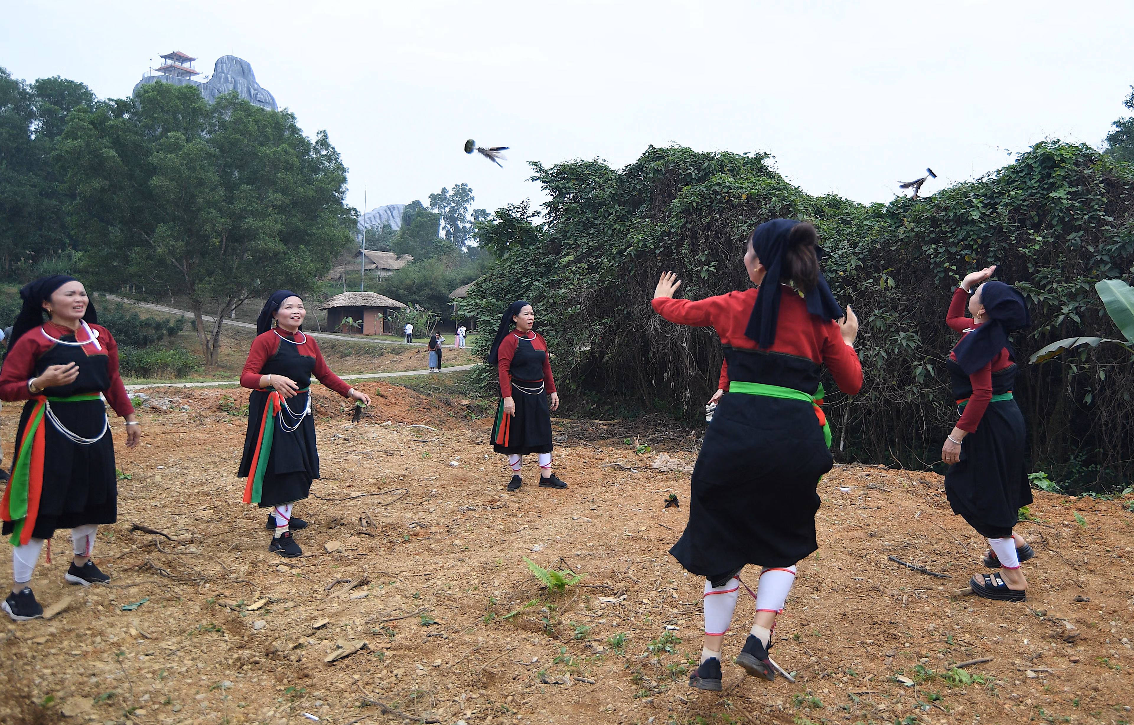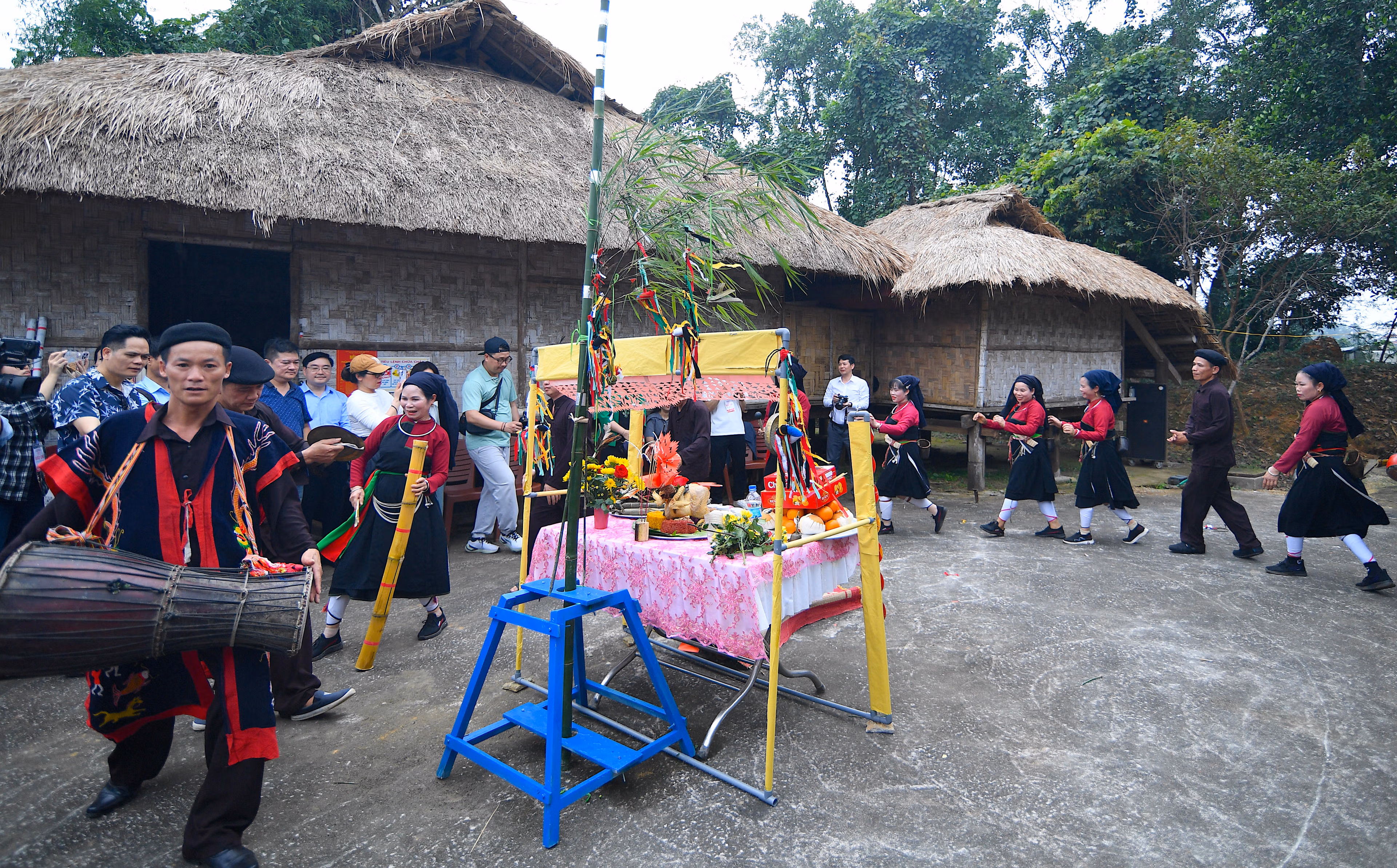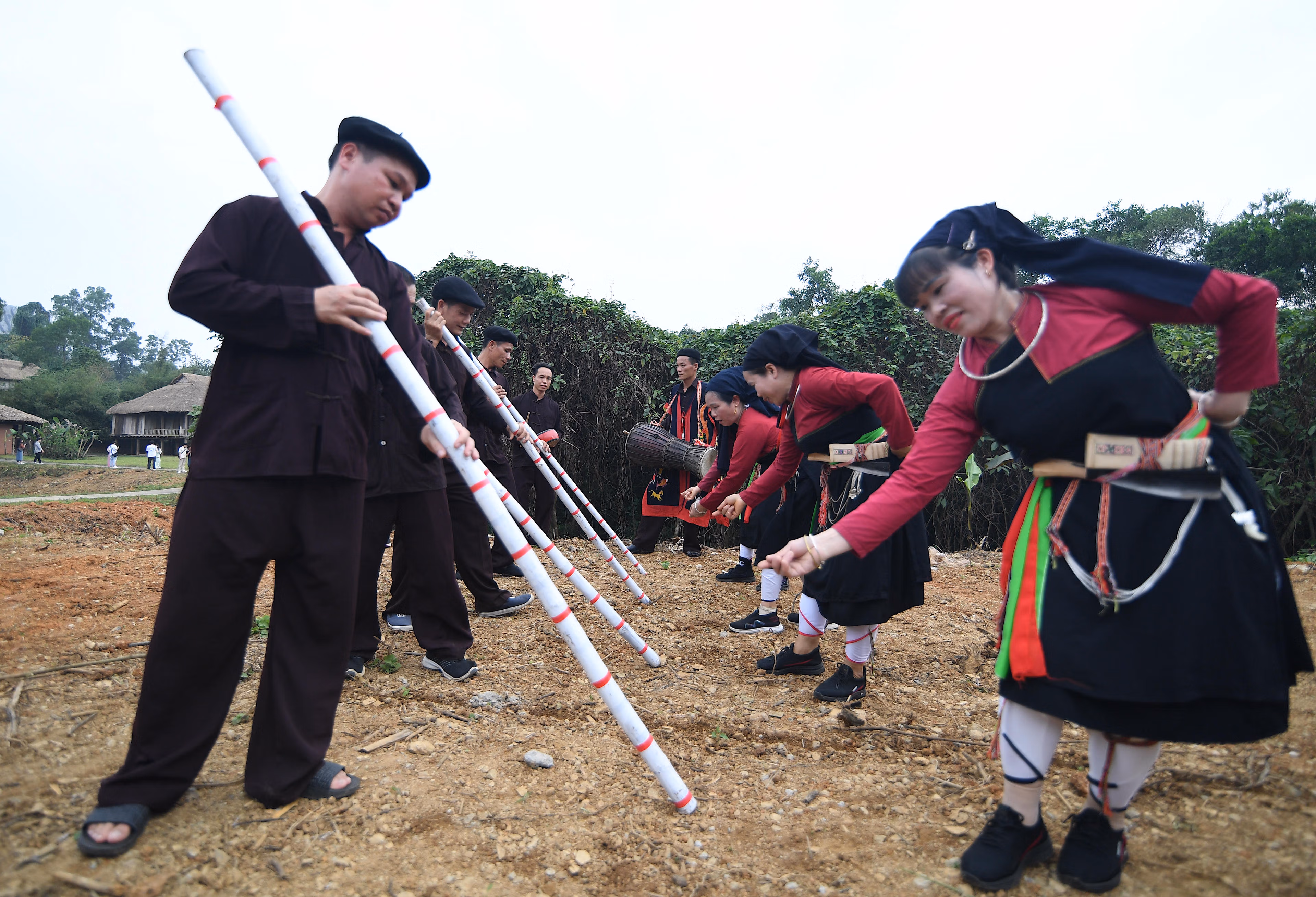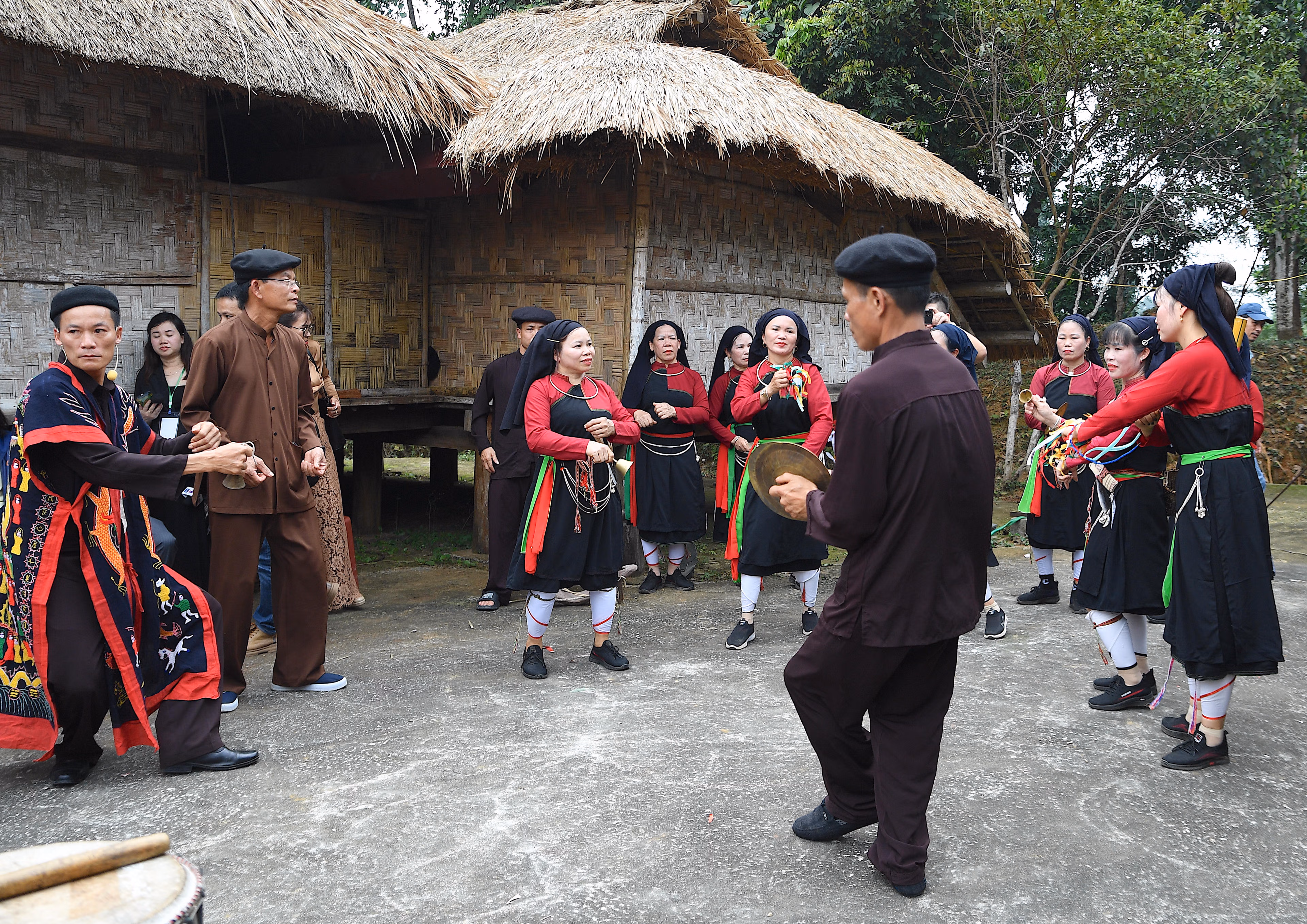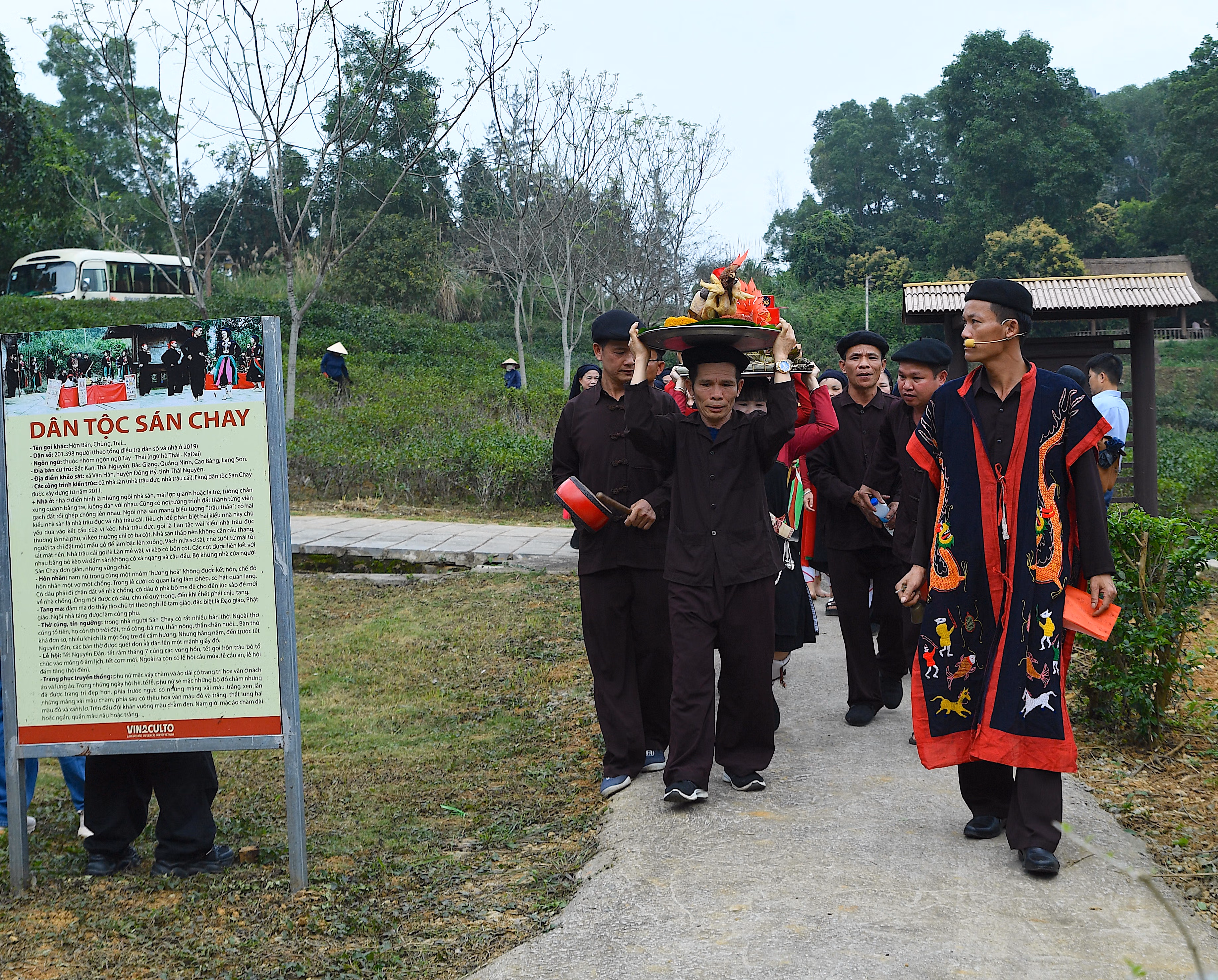 Trong không khí rộn ràng của sự kiện “Sắc Xuân trên mọi miền Tổ quốc” năm 2026, tại Làng Văn hóa - Du lịch các dân tộc Việt Nam (xã Đoài Phương, Hà Nội), đồng bào Sán Chay đến từ tỉnh Phú Thọ đã tái hiện Lễ hội Xuống đồng (Lễ hội Lồng tồng).