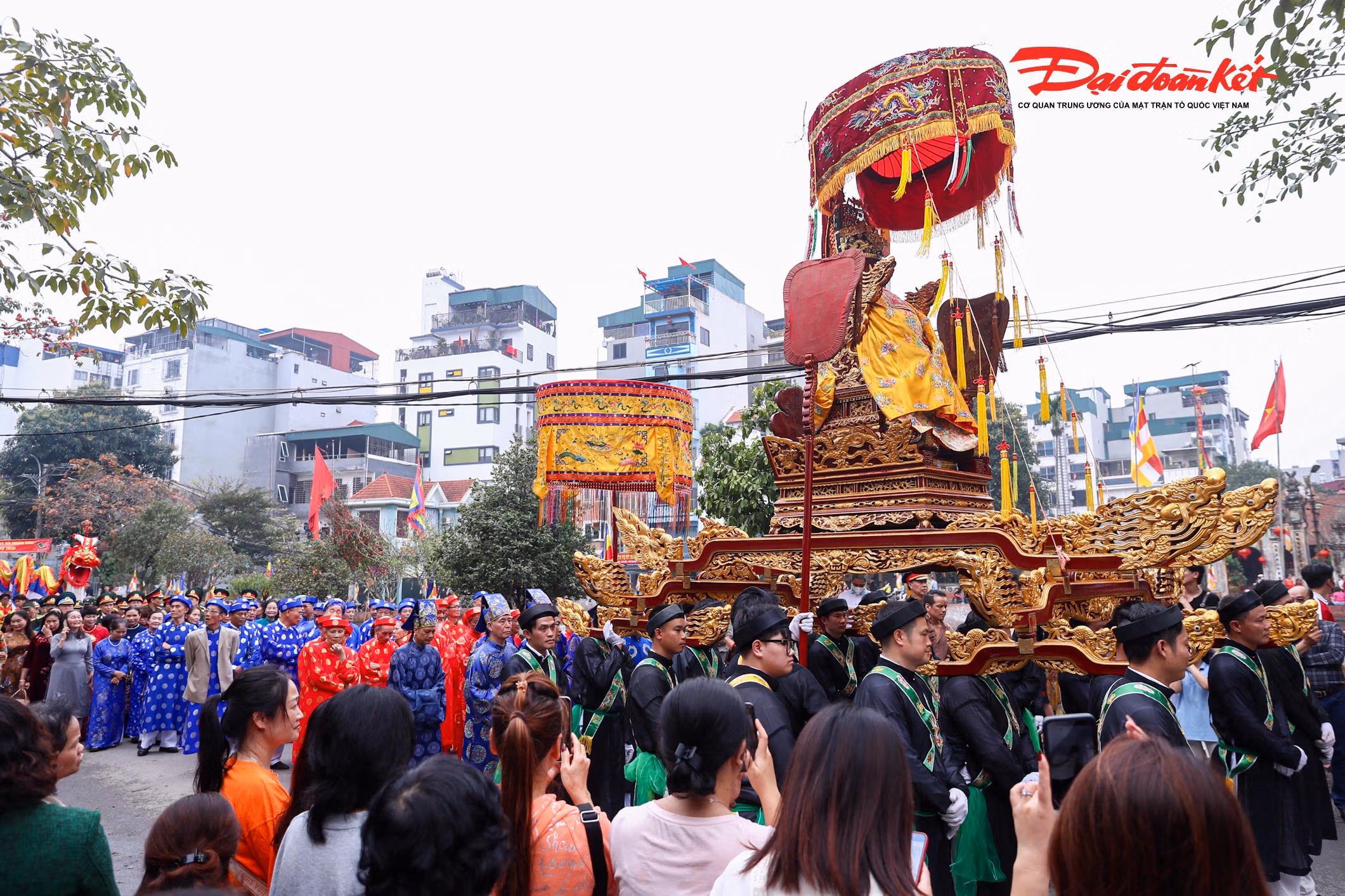 Nghi lễ rước kiệu diễn ra trang nghiêm, long trọng trong sự thành kính của người dân làng Triều Khúc. Đoàn rước với kiệu thánh sơn son thếp vàng được khiêng bởi những trai đinh khỏe mạnh, đi giữa tiếng trống chiêng rộn rã và cờ ngũ sắc tung bay. Hai bên đường, người dân chỉnh tề dâng hương, chắp tay cúi lạy khi kiệu đi qua, thể hiện lòng biết ơn và sự tôn kính đối với Thành hoàng làng – Bố Cái Đại Vương Phùng Hưng.