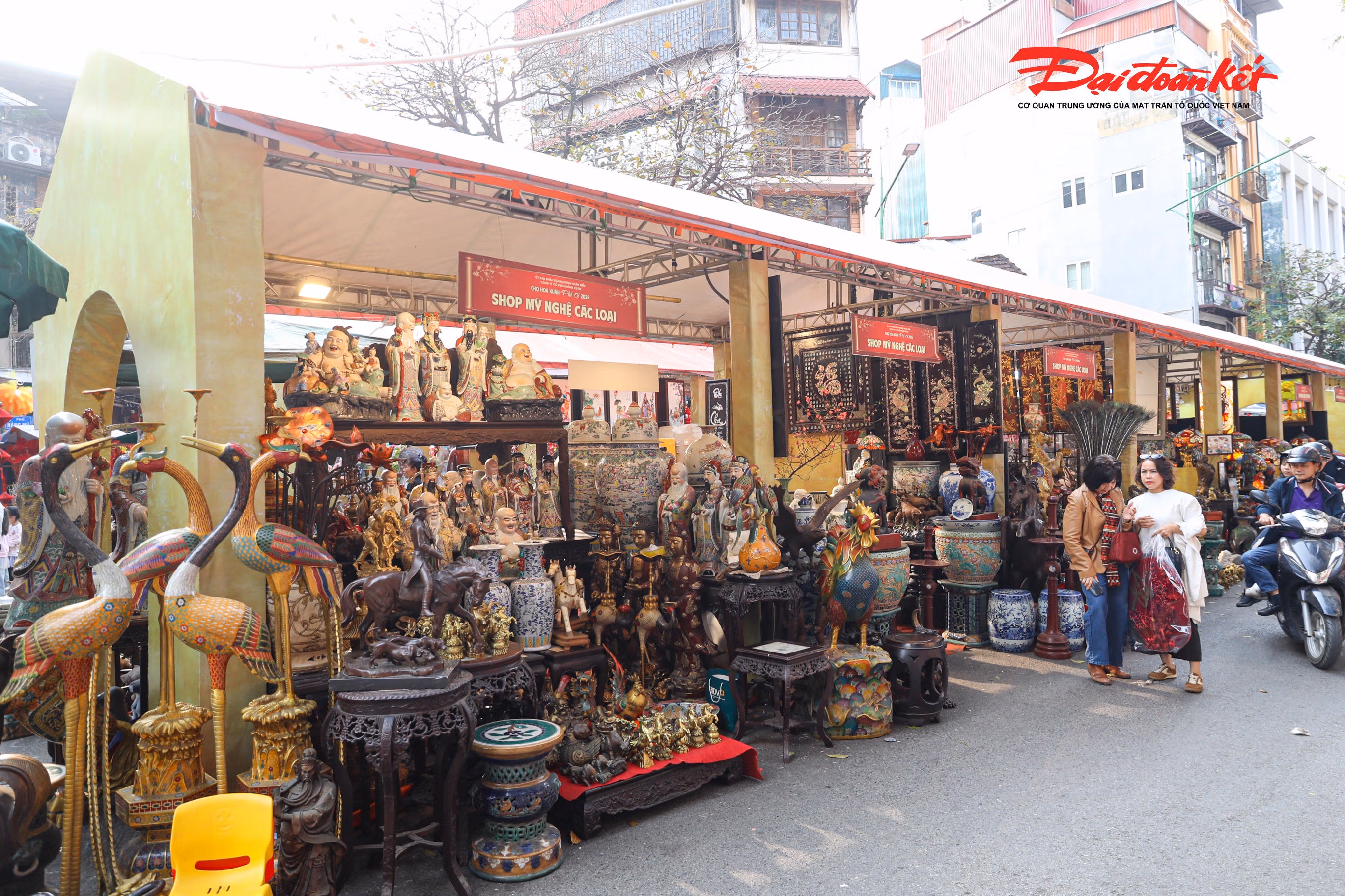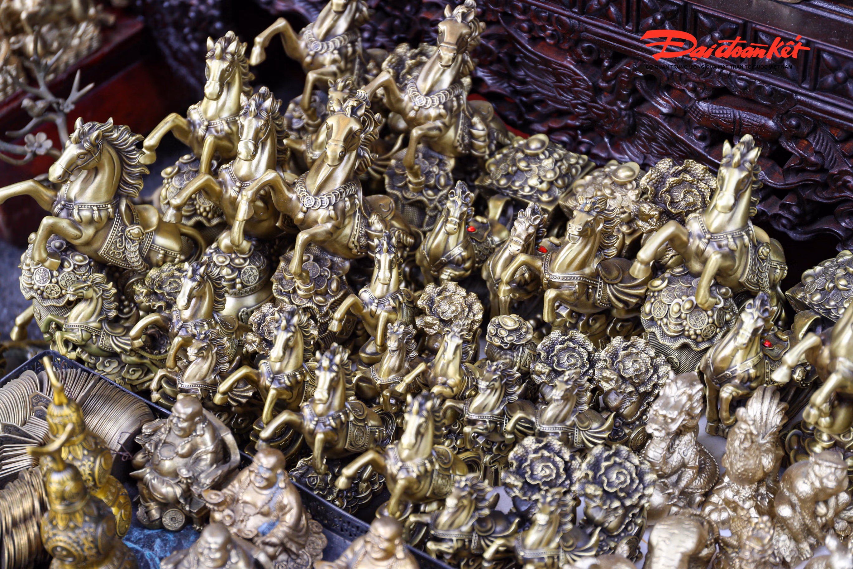 Các tiểu thương mang đến nhiều mẫu tượng linh vật ngựa với đa dạng chất liệu như đồng, gốm, đá, gỗ…, góp phần tạo điểm nhấn ấn tượng và đậm sắc xuân cho không gian chợ.