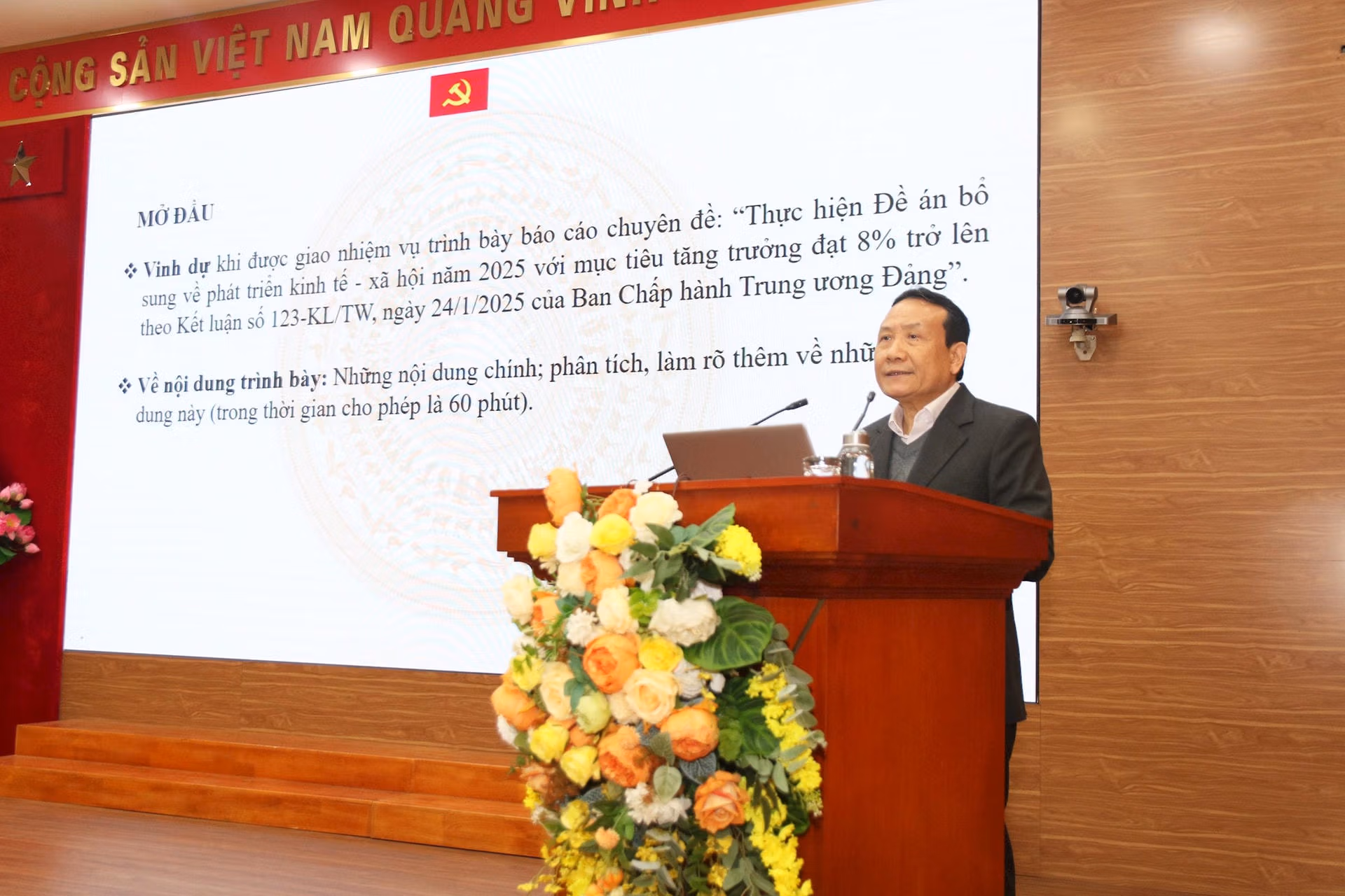 Tại Hội nghị, các đại biểu đã nghe các chuyên đề về "Đột phá phát triển khoa học, công nghệ, đổi mới sáng tạo và chuyển đổi số quốc gia theo tinh thần Nghị quyết số 57-NQ/TW ngày 22/12/2024 của Bộ Chính trị"; chuyên đề "Tăng cường sự lãnh đạo của Đảng đối với công tác giáo dục cần, kiệm, liêm, chính, chí công vô tư theo Chỉ thị số 42-CT/TW, ngày 16/1/2025 của Bộ Chính trị và Quy định số 231-QĐ/TW, ngày 17/01/2025 của Bộ Chính trị về bảo vệ người đấu tranh, chống tham nhũng, lãng phí, tiêu cực"; chuyên đề "Thực hiện Đề án bổ sung về phát triển kinh tế - xã hội năm 2025 với mục tiêu tăng trưởng đạt 8% trở lên theo Kết luận số 123-KL/TW ngày 24/01/2025 của Ban Chấp hành Trung ương Đảng".