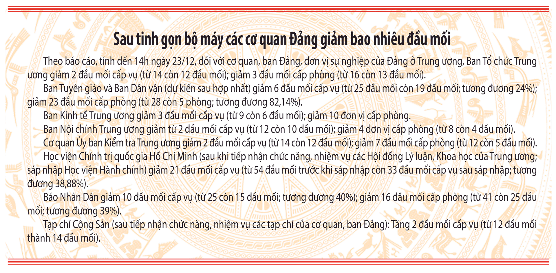 Tổng Bí thư Tô Lâm yêu cầu, tinh gọn tổ chức bộ máy đây không chỉ là vấn đề về quy mô hay số lượng, mà sâu xa hơn là phải tạo sự thay đổi về chất trong hoạt động của hệ thống chính trị. Tinh giản không có nghĩa là cắt giảm một cách cơ học, mà là loại bỏ những vị trí không cần thiết, giảm những công việc không hiệu quả, từ đó tập trung nguồn lực cho những lĩnh vực then chốt, những con người thực sự xứng đáng và phù hợp. Với yêu cầu cao hơn khi triển khai tổ chức mới, phải có kế hoạch đào tạo, bồi dưỡng lại cán bộ trước và sau khi sắp xếp lại tổ chức.