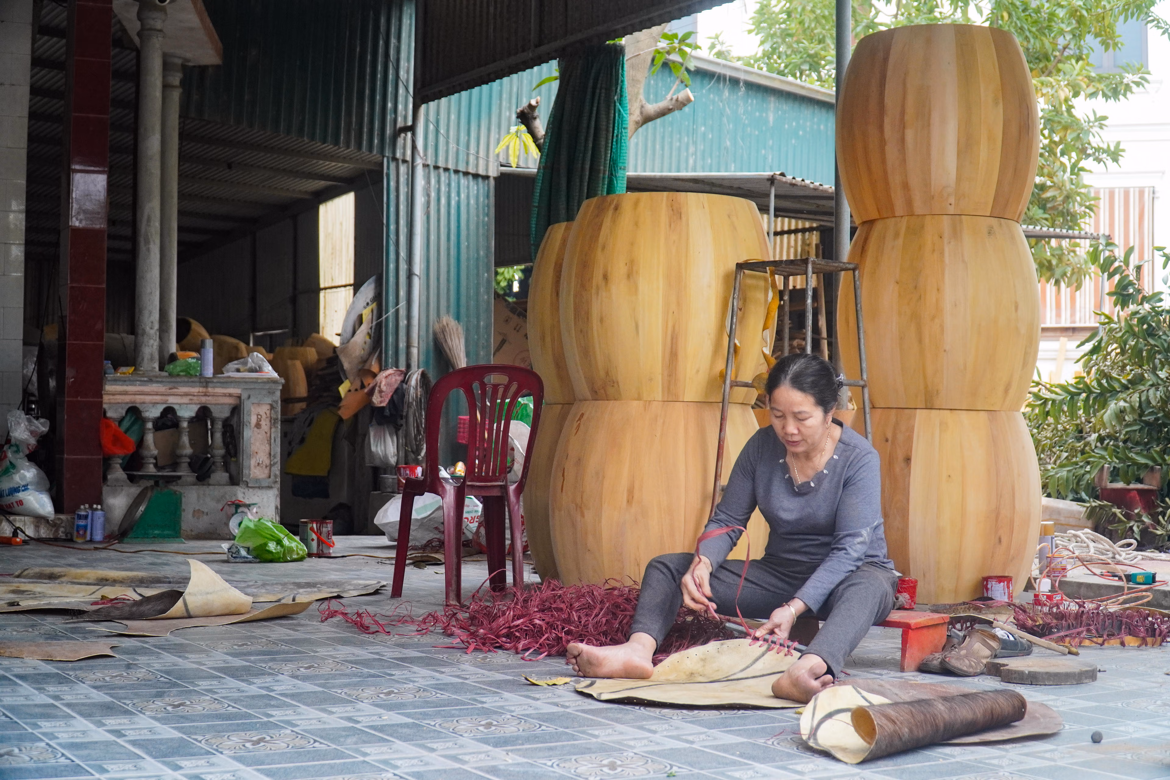 Những ngày cận Tết, làng trống Đọi Tam ở Ninh Bình rộn ràng từ sáng sớm đến khuya. Tiếng búa đóng tang, tiếng da căng mặt trống vang lên liên hồi, báo hiệu một mùa làm ăn tất bật, khi người thợ dồn tâm sức cho từng chiếc trống kịp theo nhịp Tết.