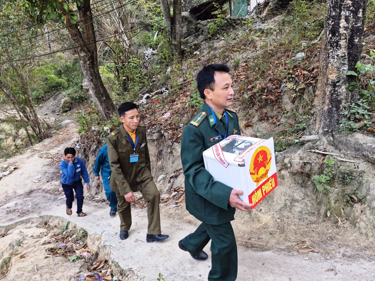 Đồng thời, với khu vực khó khăn nhất là bản Tà Cóm, ngay trong chiều ngày 14/3, hơn 300 cử tri của bản đã được nhận thẻ cử tri. Những cử tri đi làm ăn xa, đăng ký bầu cử tại địa phương đã kịp về nhà, nhận thẻ cử tri để thực hiện quyền công dân của mình vào ngày bầu cử sáng nay.