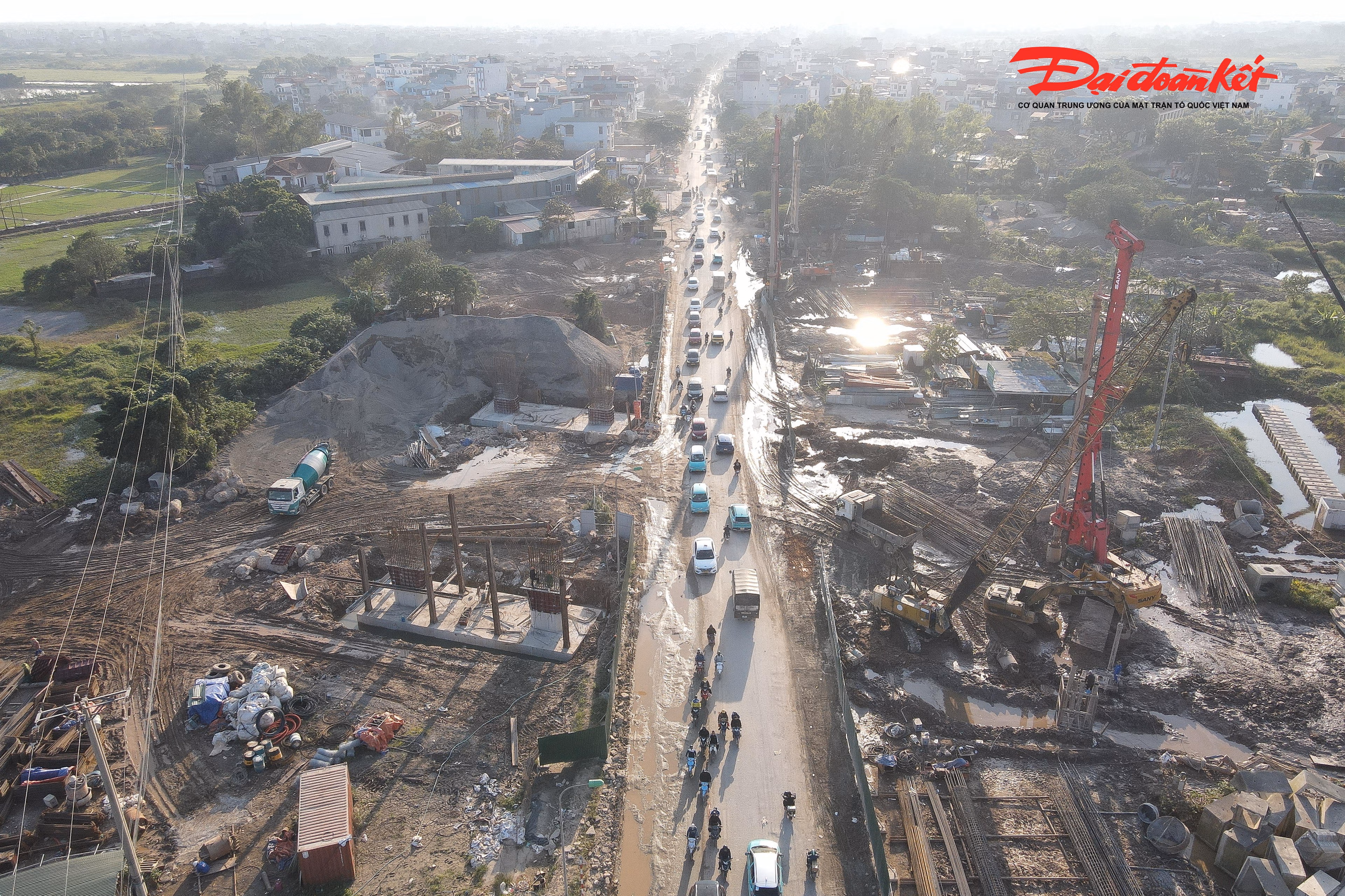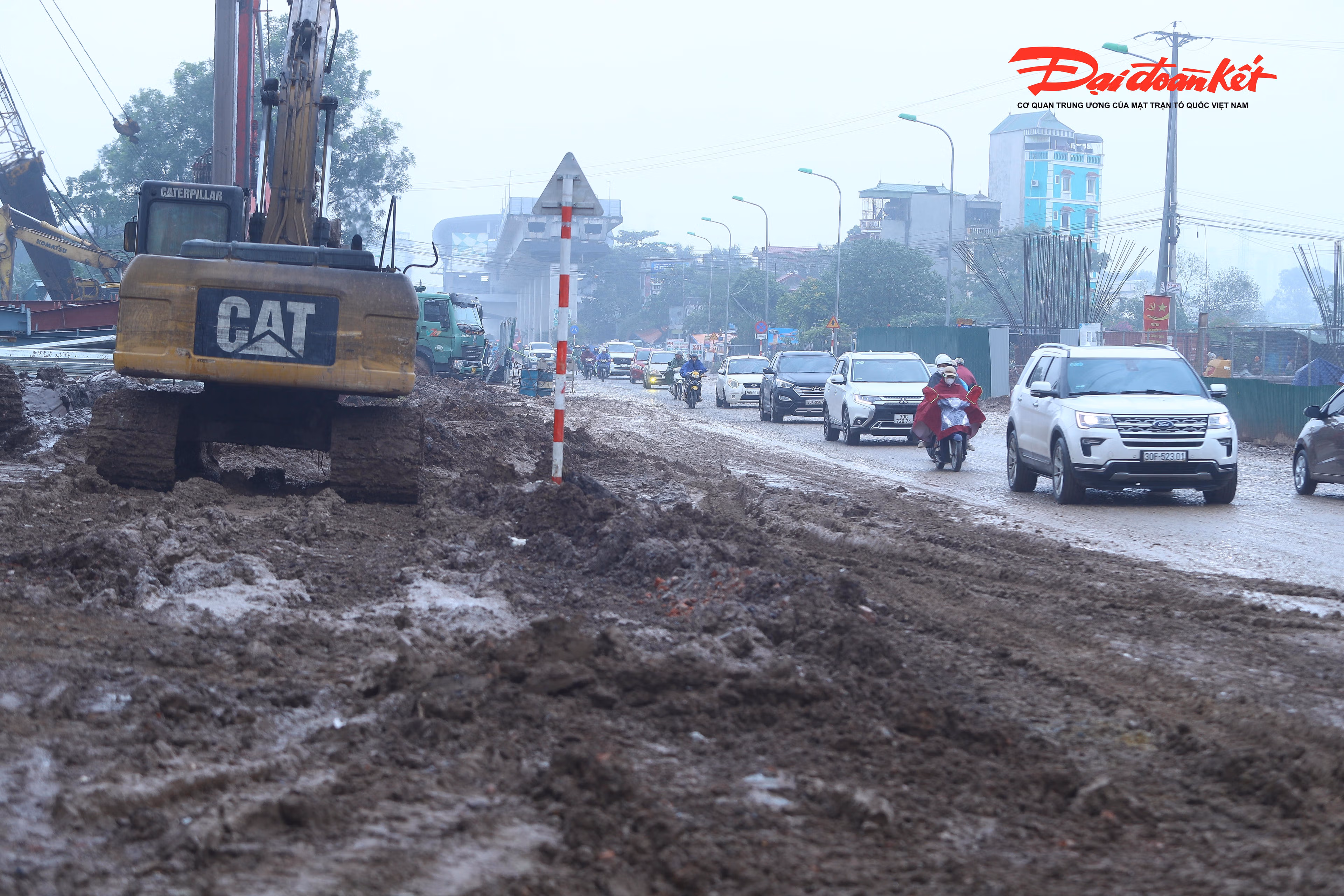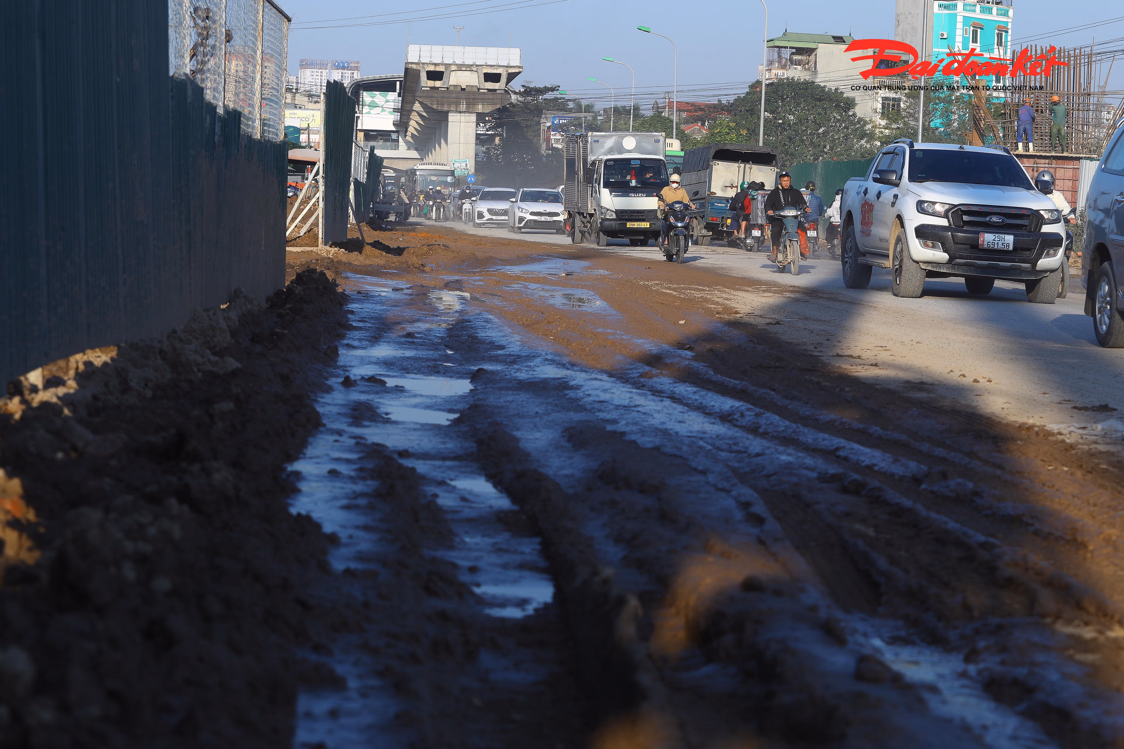 Việc thi công hạng mục cầu vượt nút giao Quốc lộ 6 qua vành đai 4 (phường Yên Nghĩa, Hà Nội) bùn tràn ra đường, ngày nắng thì bụi bẩn, ngày mưa thì lầy lội khiến việc di chuyển của người dân gặp nhiều khó khăn.