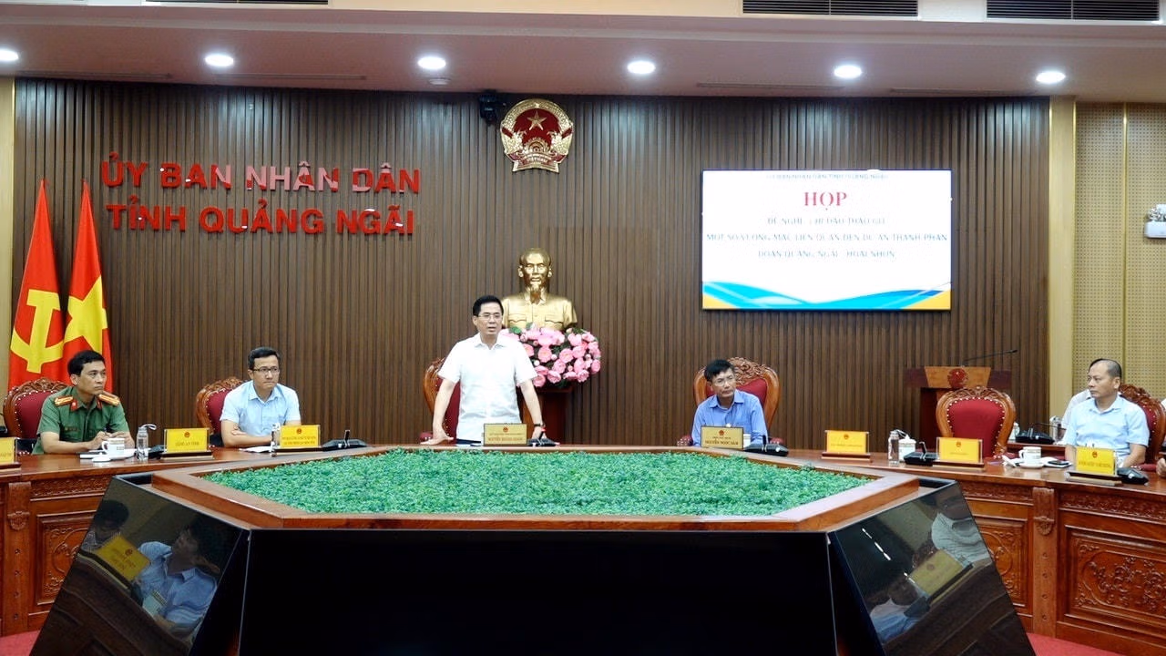 Phát biểu tại buổi làm việc, ông Nguyễn Hoàng Giang, Chủ tịch UBND tỉnh Quảng Ngãi đã ghi nhận và đánh giá cao tinh thần trách nhiệm, sự phối hợp tích cực giữa các sở, ngành, địa phương và nhà thầu trong thời gian qua.
