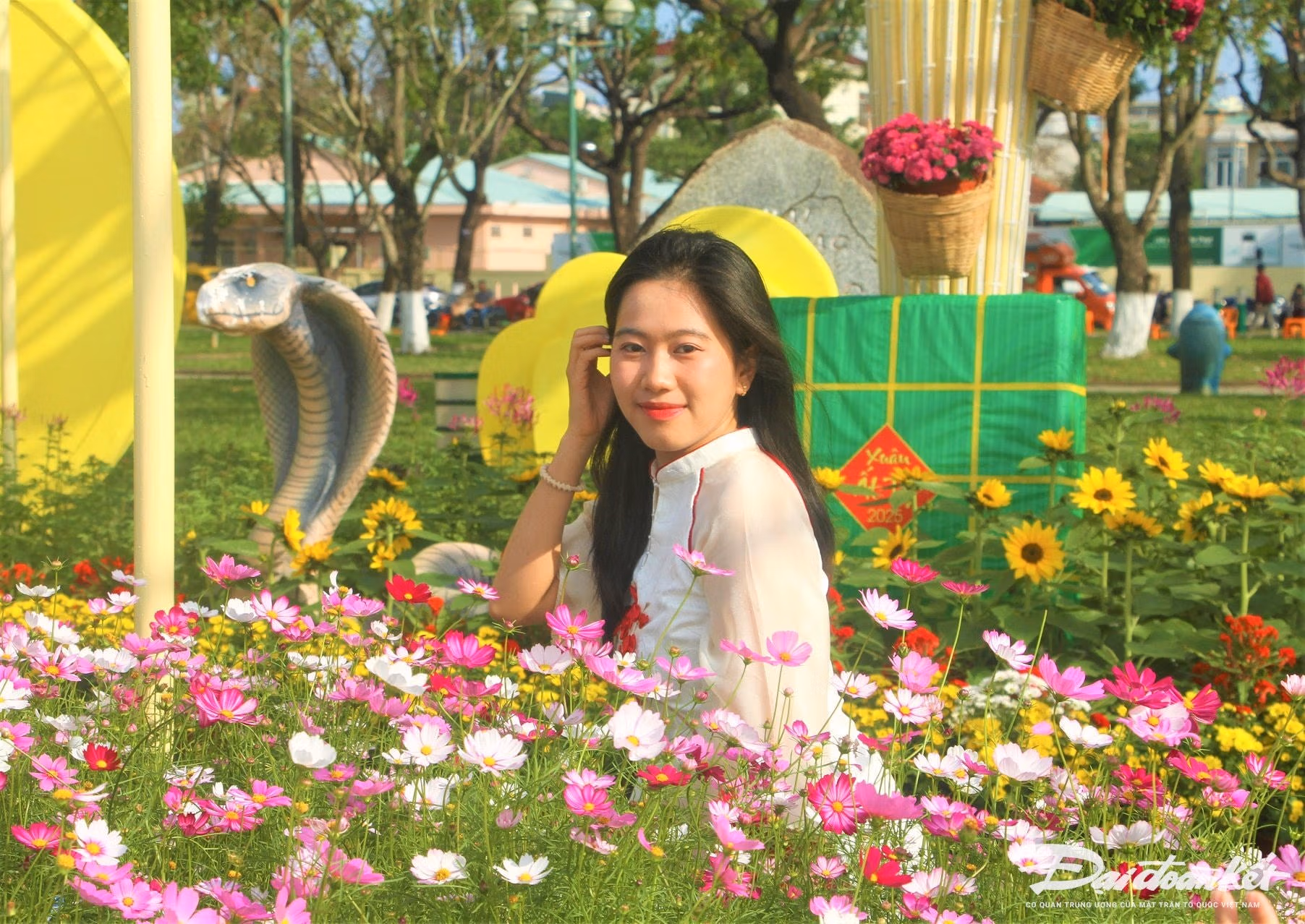 Ghi nhận của chúng tôi, chiều mùng 1 Tết, thời tiết mát mẻ nên nhiều người dân đổ về Quảng trường 24/3, TP Tam Kỳ, tỉnh Quảng Nam để chụp ảnh lưu niệm bên các tiểu cảnh, linh vật rắn và các loại hoa khoe sắc trong những ngày đầu năm mới.