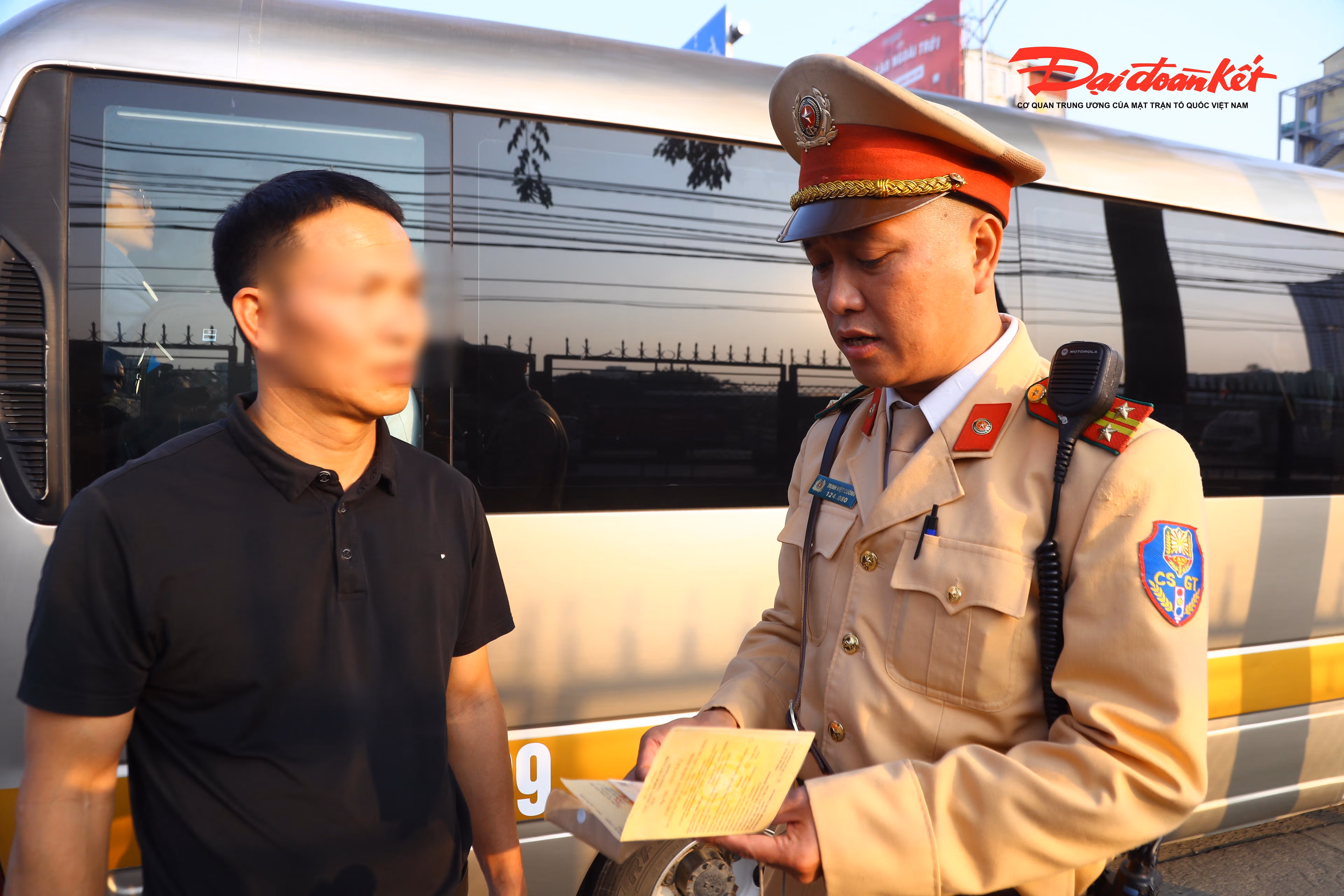 Dùng camera AI, CSGT đón lõng xử lý nhiều xe khách vi phạm ở Hà Nội Thứ Sáu 19/12/2025 20:50 (GMT+7) Sau khi hệ thống camera AI phát hiện xe chở khách vi phạm tại các tuyến đường, sẽ được gửi cho CSGT tuần tra trên tuyến xử lý, nhằm đảm bảo an toàn giao thông. Video: Camera 'soi' xe vi phạm từ khoảng cách 500 m. Theo ghi nhận của PV Báo Đại đoàn kết, chiều ngày 19/12, Đội CSGT đường bộ số 14 phối hợp với Đội Chỉ huy giao thông và điều khiển đèn tín hiệu (Phòng CSGT Công an TP Hà Nội) xử lý tình trạng xe khách vi phạm quanh các bến xe Giáp Bát, Nước Ngầm bằng hệ thống camera AI.Để xử lý triệt để xe khách vi phạm, CSGT Hà Nội kết hợp hệ thống camera AI kiểm soát từ xa, phát hiện các phương tiện dừng đỗ tại nơi có biển cấm, đón và trả khách trái quy định dọc tuyến đường Giải Phóng.Trung tá Trịnh Việt Cường (Đội CSGT đường bộ số 14) cho hay, dịp cận Tết lưu lượng phương tiện tăng cao, vì vậy, để đảm bảo an toàn cho người dân Đội CSGT đường bộ số 14 thường xuyên tuần tra xử lý xe khách. Thời gian qua, từ khi Công an Hà Nội áp dụng hơn 1.830 camera AI, tình trạng vi phạm đã giảm rõ rệt song vẫn có một số trường hợp cố tình vi phạm.Ghi nhận cho thấy, trong hơn một giờ làm việc, các camera AI trên tuyến đường Giải Phóng cùng lực lượng tuần tra đã xử lý 5 trường hợp xe chở khách vi phạm, chủ yếu là hành vi dừng đỗ trái quy định quanh khu vực bến xe.Tài xế N.V.Q chạy tuyến Hà Nội - Ninh Bình sau khi bị lực lượng chức năng dừng xe kiểm tra, đã thắc mắc, ngay lập tức được tổ tuần tra cho xem hình ảnh từ camera AI thể hiện phương tiện dừng đón khách trái quy định. Thấy rõ chứng cứ, anh Q thừa nhận do xe rời bến với số khách ít ỏi, nên đã dừng đón thêm người ở ngoài bến xe.Theo đó, lực lượng chức năng đã tiến hành lập biên bản viên phạm.CSGT Hà Nội cho biết, ngoài khu vực quanh các bến xe, nhiều tuyến đường khác sẽ được camera AI kiểm soát, phát hiện tình trạng xe khách vi phạm để xử lý trực tiếp hoặc phạt nguội.Lãnh đạo Đội CSGT số 14 cho biết, từ nay đến đầu năm 2026, CSGT sẽ đồng bộ các giải pháp nghiệp vụ, kiềm chế tai nạn giao thông, hạn chế ùn tắc trên địa bàn. Trong đó, sẽ tăng cường kiểm soát xe kinh doanh vận tải, xử lý nghiêm hành vi đón trả khách không đúng nơi quy định. Việc ngăn chặn các vi phạm liên quan đến xe khách dịp cuối năm giúp các nhà xe nâng cao ý thức chấp hành, qua đó ngăn được nguy cơ xảy ra tai nạn giao thông. Lê Khánh
