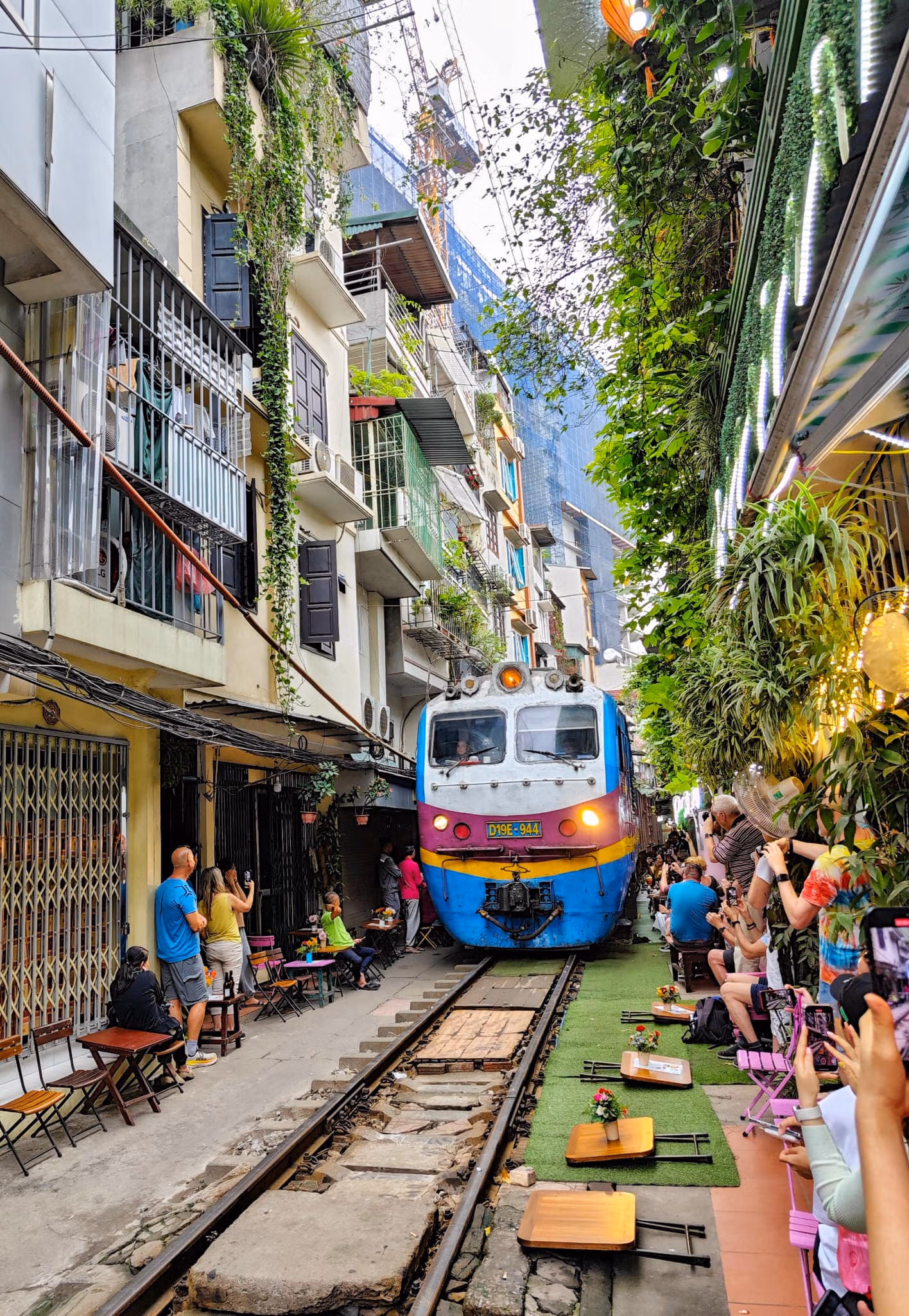 Không thể phủ nhận, “phố cà phê đường tàu” có sức hút đặc biệt đối với du lịch Thủ đô. Khoảnh khắc khi đoàn tàu chạy qua, du khách ngồi uống cà phê, giơ điện thoại chụp hình dù cho khoảng cách ấy chỉ vài gang tay. Những hình ảnh đó nhiều năm qua xuất hiện tràn ngập mạng xã hội, trở thành một “đặc sản” du lịch mới lạ.