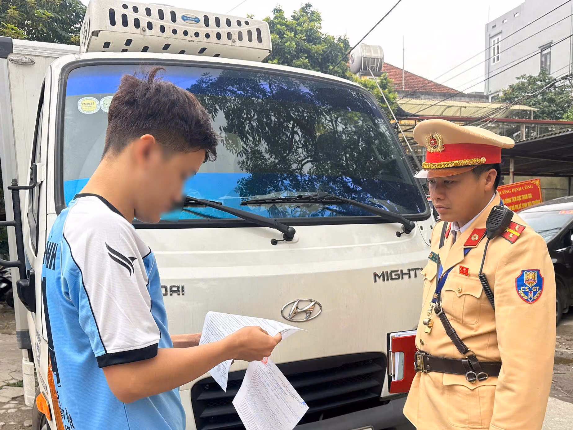 Ngay sau đó, tổ công tác đã lập hồ sơ vụ việc, lập biên bản vi phạm hành chính đối với tài xế Đ.V.H về hành vi điều khiển xe chạy không đúng thời gian quy định, đồng thời đưa người và tang vật liên quan về Công an phường Định Công để tiếp tục làm rõ.