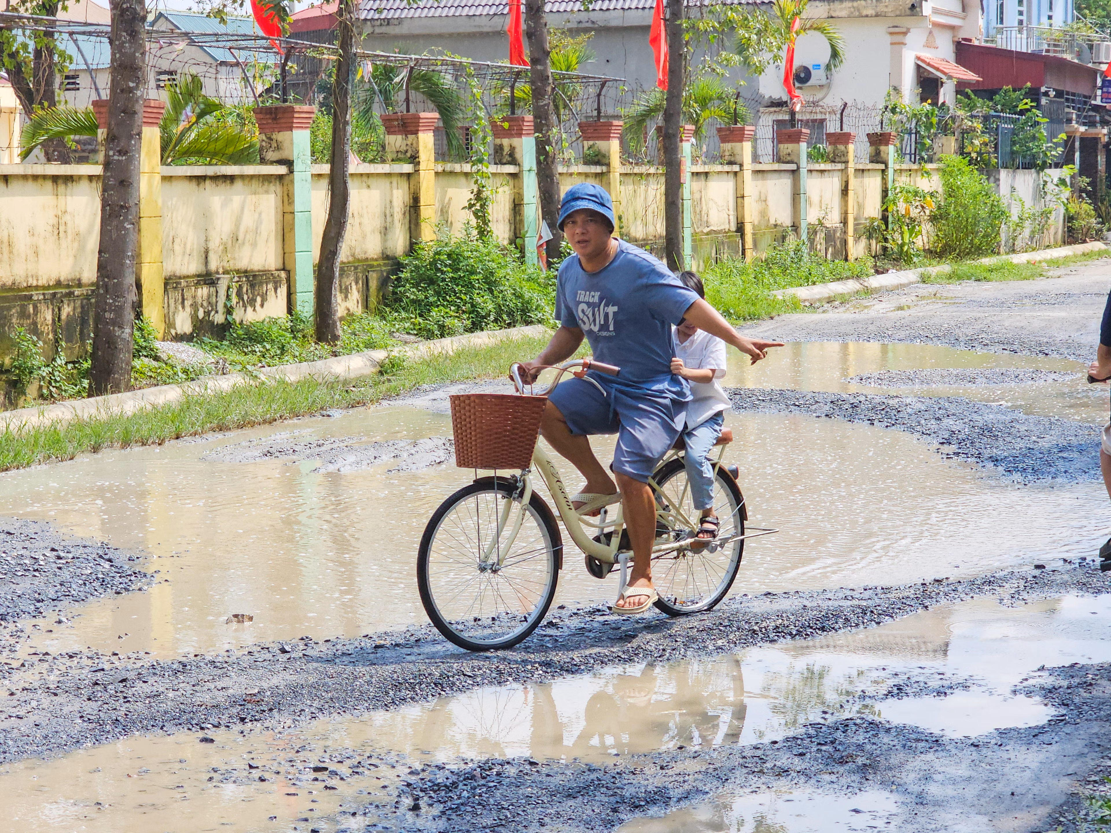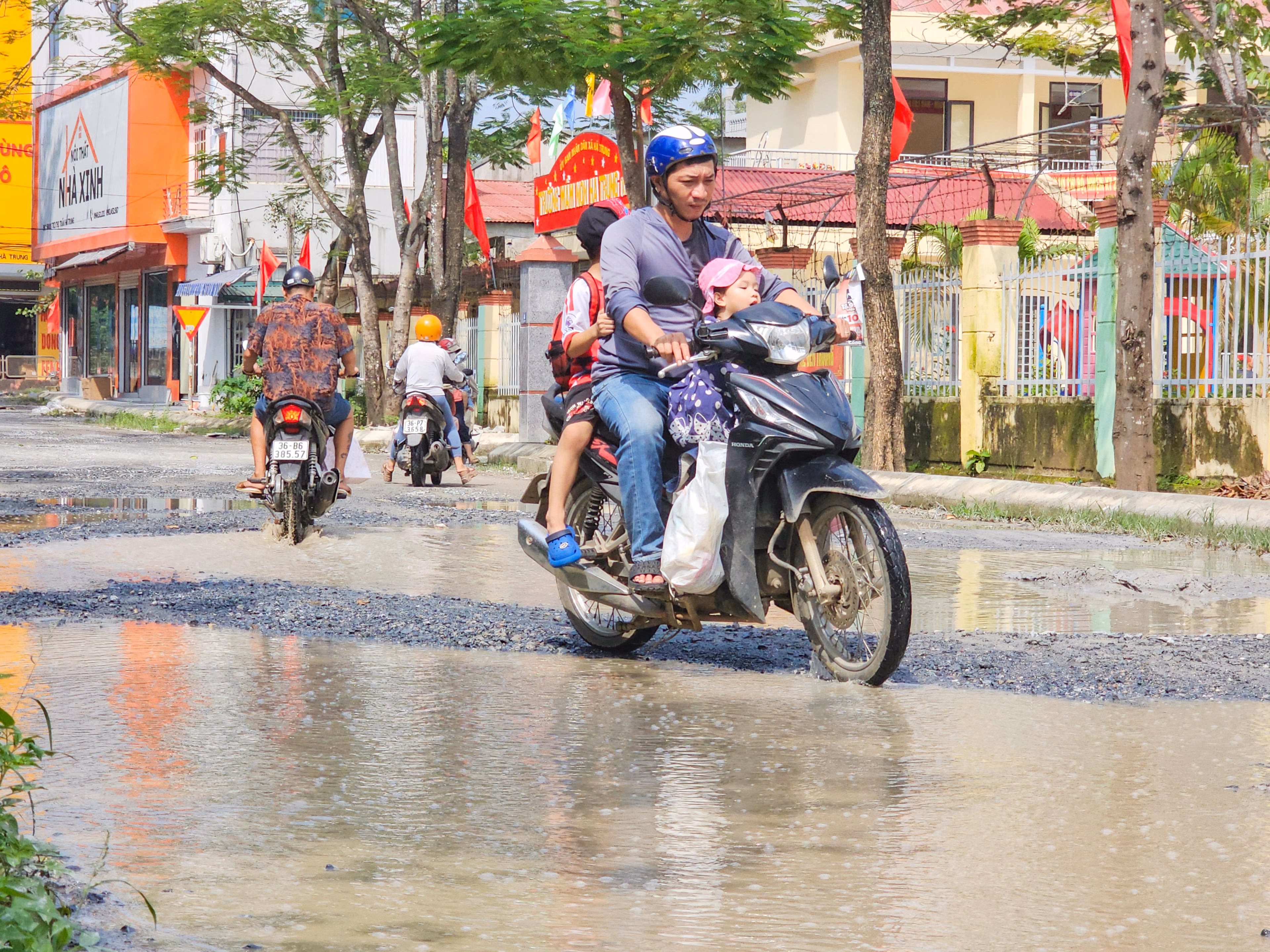 Anh Đặng Văn Bình, trú thôn Thượng Quý, xã Hà Trung có 2 con học mầm non cho biết: Tuyến đường hư hỏng quá nặng, cứ mưa là ngập, khiến việc đưa đón con đi học rất vất vả.