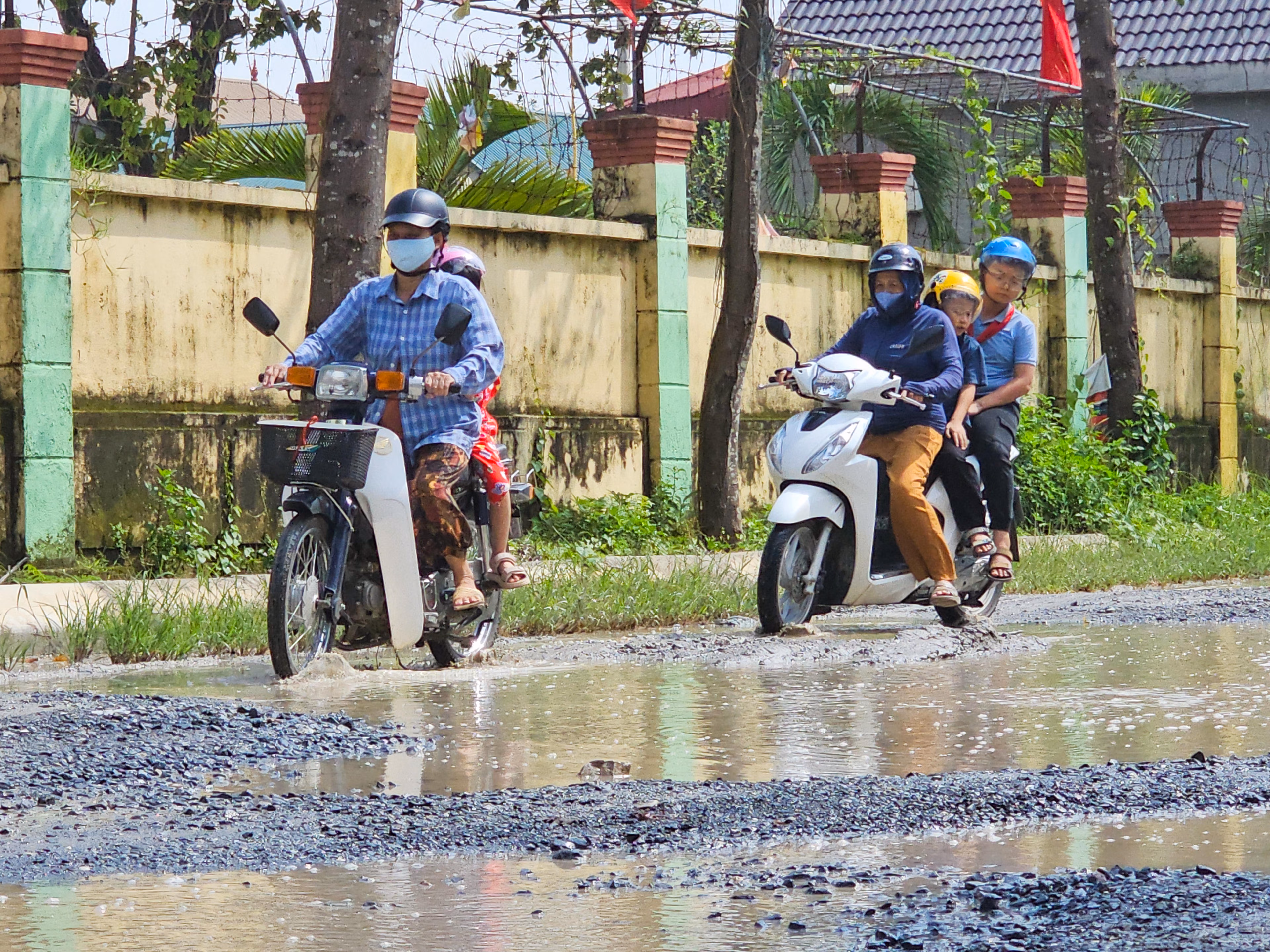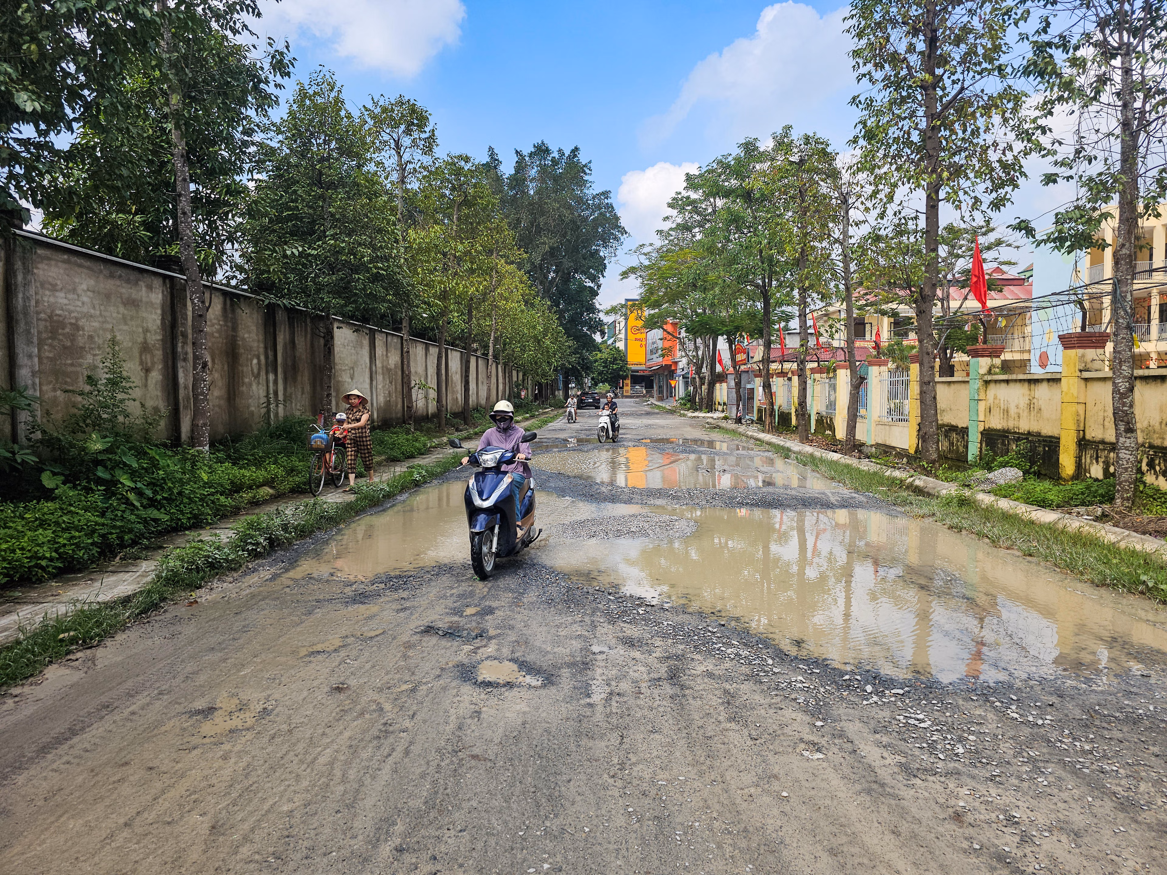 Theo ghi nhận của phóng viên Báo Đại đoàn kết ngày 9/10, tuyến đường dài chưa đầy nửa cây số nay đã hư hỏng nghiêm trọng. Mặt đường bong tróc, nhiều vị trí bị lún sâu, xuất hiện dày đặc ổ voi, ổ gà, gây khó khăn cho người và phương tiện qua lại. Dọc tuyến đường, nhiều nắp cống bị cạy mất, tiềm ẩn nguy cơ mất an toàn, đặc biệt vào ban đêm hoặc khi trời mưa.