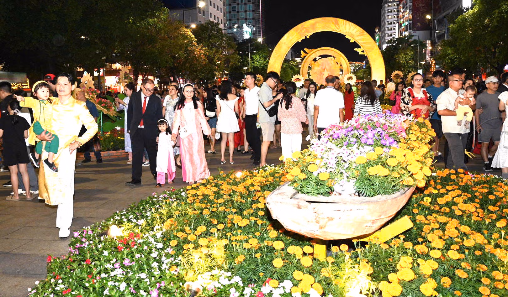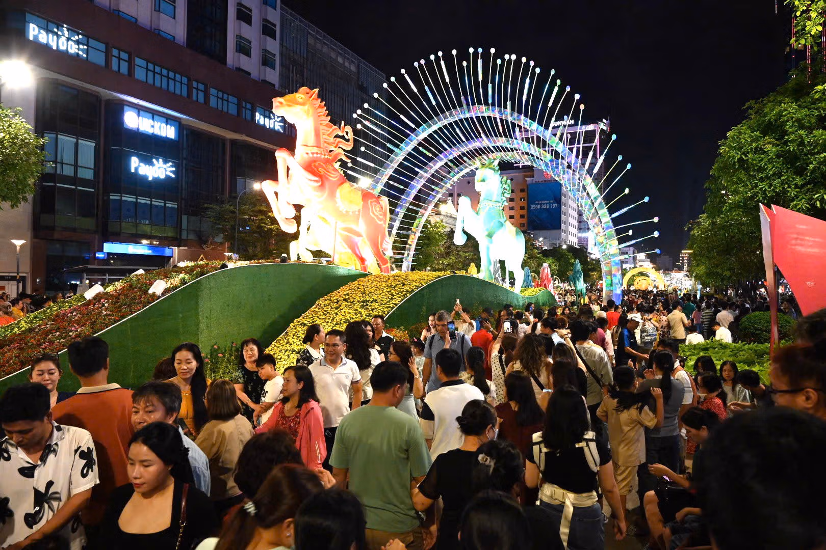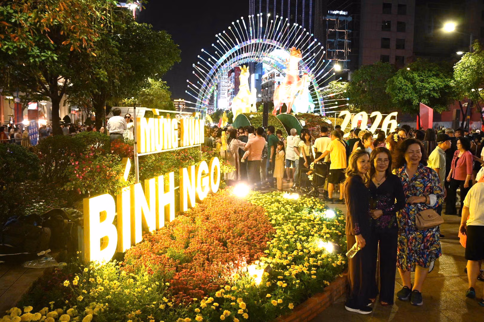 Tối ngày 15/2, hàng chục nghìn người dân và du khách đổ về khu vực trung tâm TP Hồ Chí Minh để tham quan Đường hoa Nguyễn Huệ Tết Bính Ngọ 2026, tạo nên khung cảnh nhộn nhịp và rực rỡ sắc xuân ngay từ ngày đầu mở cửa.