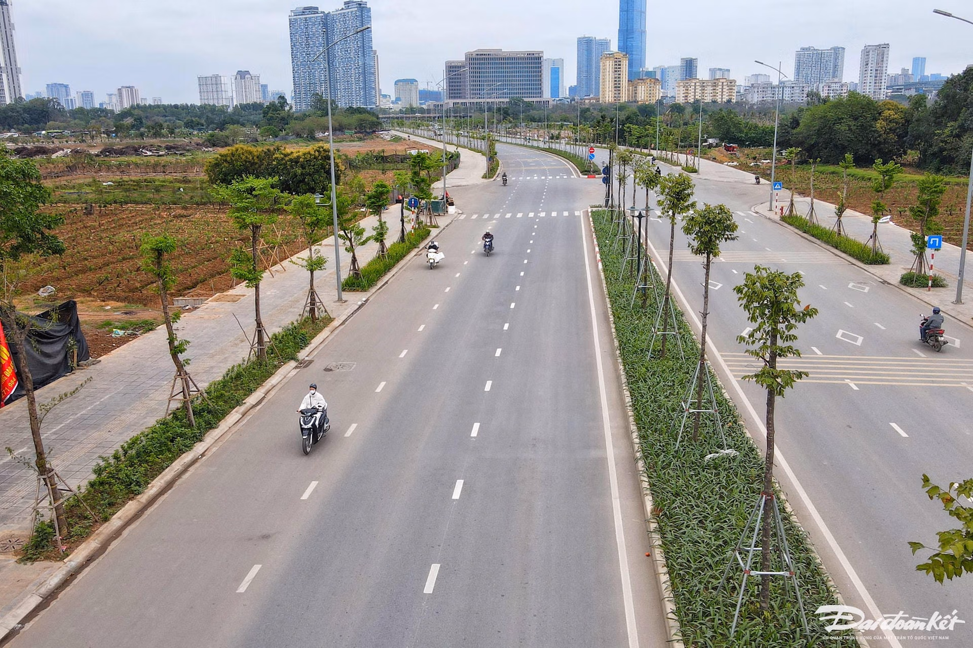 Đường Lê Quang Đạo kéo dài dự kiến về đích vào tháng 5/2025 Thứ Hai 31/03/2025 13:01 (GMT+7) Sau hơn 2 năm thi công, đường Lê Quang Đạo kéo dài đã đạt 93% tiến độ, dự kiến sẽ thông xe toàn tuyến vào tháng 5/2025. Toàn cảnh đường Lê Quang Đạo kéo dài. Video: Lê Khánh.Dự án đầu tư xây dựng đường Lê Quang Đạo kéo dài (Hà Nội) với chiều dài 2,6 km được khởi công vào tháng 2/2023 có tổng mức đầu tư hơn 700 tỷ đồng, do UBND quận Nam Từ Liêm làm chủ đầu tư.Dự án có điểm đầu tại nút giao Lê Quang Đạo - Đại lộ Thăng Long (quận Nam Từ Liêm); điểm cuối tại Khu đô thị Dương Nội (quận Hà Đông).Theo thiết kế, tuyến đường sẽ có tiêu chuẩn đường liên khu vực, với vận tốc 60 km/h. Quy mô mặt cắt ngang đường điển hình 40 m, đáp ứng 6 làn xe.Để giảm ùn tắc giao thông, từ ngày 22/1/2025, đoạn từ nút giao đường gom Đại lộ Thăng Long đến hết phạm vi giao cắt với đường Đại Mỗ (đường 70) với chiều dài 1,9 km đã cơ bản hoàn thành, được UBND TP Hà Nội chấp thuận đưa vào khai thác tạm.Với khoảng 700 m còn lại của dự án, đoạn từ nút giao với đường 70 đến chung cư Anland Lakeview hiện đang được triển khai thi công.Theo ghi nhận của PV Báo Đại Đoàn Kết sáng 30/3, 700 m đường đã được thảm nhựa, các đơn vị thi công đang tiến hành triển khai hạng mục vỉa hè, cây xanh...Đại diện Ban QLDA đầu tư xây dựng quận Nam Từ Liêm cho biết, theo hợp đồng ký kết giữa chủ đầu tư và nhà thầu, thời gian thi công dự án đường Lê Quang Đạo kéo dài là 810 ngày. Sau hơn 2 năm từ ngày khởi công, đến nay khối lượng dự án đạt khoảng 93%, tiến độ vẫn đảm bảo theo kế hoạch.Dự kiến đến tháng 5/2025 dự án sẽ thông xe toàn tuyến.Các đơn vị thi công đang triển khai hạng mục lát đá vỉa hè.Cây xanh đang được dâm ủ tại dự án. Lê Khánh
