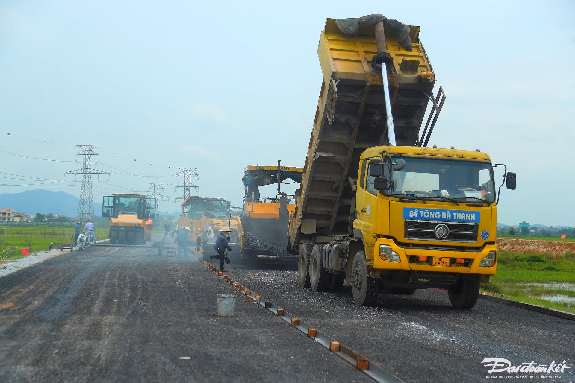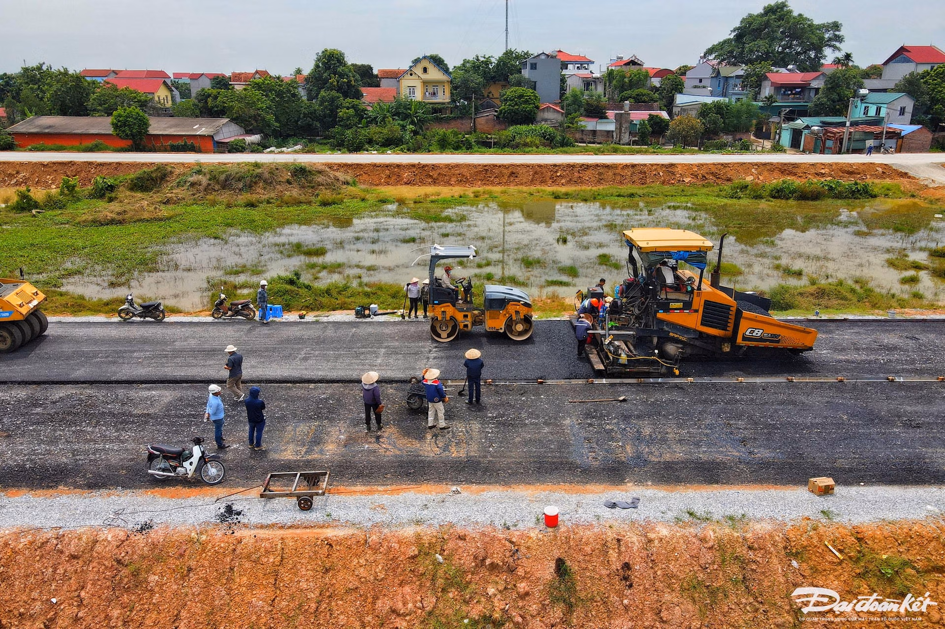 Đường Vành đai 4 - Vùng Thủ đô: Thảm nhựa những km đầu tiên Thứ Năm 22/08/2024 17:25 (GMT+7) Sau hơn 1 năm khởi công, Dự án đường Vành đai 4 - Vùng Thủ đô đoạn qua Hà Nội đã bắt đầu thảm bê tông nhựa. Dự án đường Vành đai 4 - Vùng Thủ đô Hà Nội có tổng chiều dài 112,8km, đi qua 3 tỉnh, thành phố, gồm Hà Nội (57,95km), Hưng Yên (19,31km), Bắc Ninh (36,26km). Dự án có tổng mức đầu tư trên 85.813 tỷ đồng được chia làm 7 dự án thành phần, trong đó đường cao tốc Vành đai 4 được đầu tư theo PPP với mức đầu tư 56.500 tỷ đồng. Dự án được khởi công ngày 25/6/2023 và có tiến độ hoàn thành đường song hành theo phê duyệt dự án vào năm 2026, hoàn thành đường cao tốc năm 2027.Đường song hành (đường đô thị) Vành đai 4, đoạn qua Hà Nội có chiều dài hơn 57km, đi qua các quận huyện: Hà Đông, Đông Anh, Mê Linh, Hoài Đức, Thường Tín…Ông Nguyễn Văn Thái, cán bộ phụ trách kỹ thuật gói thầu số 8 cho hay, gói thầu số 8 đoạn qua địa bàn hai huyện Đông Anh, Mê Linh đã thi công được hơn 35% khối lượng xây lắp. Riêng đoạn đi qua xã Tân Dân (Đông Anh) đã thảm các lớp nhựa đường để chuẩn bị hoàn thiện."Việc thảm các lớp nhựa đường đánh dấu một mốc quan trọng trong quá trình thi công. Trên công trường, công nhân cùng máy móc tranh thủ những ngày nắng thi công hối hả. Hiện gói thầu số 8 đang vượt tiến độ đã đề ra. Đoạn đường đang được thảm nhựa rỗng C25, sau lớp này còn phải thảm tiếp 2 lớp nữa. Đây là đoạn tuyến đầu tiên được trải nhựa trên toàn bộ chiều dài tuyến Dự án đường Vành đai 4 - Vùng Thủ đô", ông Thái cho hay.Theo ghi nhận của PV Báo Đại Đoàn Kết, sáng ngày 22/8 hàng chục công nhân cùng máy móc đang hối hả thảm lớp nhựa đầu tiên ở đường song hành.Máy móc, công nhân hoạt động nhộn nhịp trên công trường.Đại diện đơn vị tư vấn giám sát của gói thầu số 8 cho biết: “Chúng tôi bố trí nhân lực túc trực trên tuyến đường để đánh giá chất lượng vật tư, vật liệu trong quá trình thi công dự án. Tất cả các chi tiết dù là nhỏ nhất phải được đảm bảo đúng quy chuẩn cũng như thiết kế. Những ngày qua, thời tiết nắng ráo, chúng tôi phối hợp với nhà thầu đẩy nhanh tiến độ thảm nhựa mặt đường”.Thời tiết khô ráo thuận lợi, đơn vị thi công đang đẩy nhanh tiến độ thảm nhựa mặt đường.Mỗi ngày, đơn vị thi công có thể thảm 200m mặt đường.Hình ảnh đoạn đường đơn vị thi công đã hoàn thành lớp thảm nhựa đầu tiên.Trên công trường, máy móc cỡ lớn được huy động chia thành nhiều mũi thi công.Từng mét đường đầu tiên đang được thảm nhựa.Việc thảm nhựa mặt đường là dấu mốc quan trọng trong việc thực hiện dự án. Lê Khánh