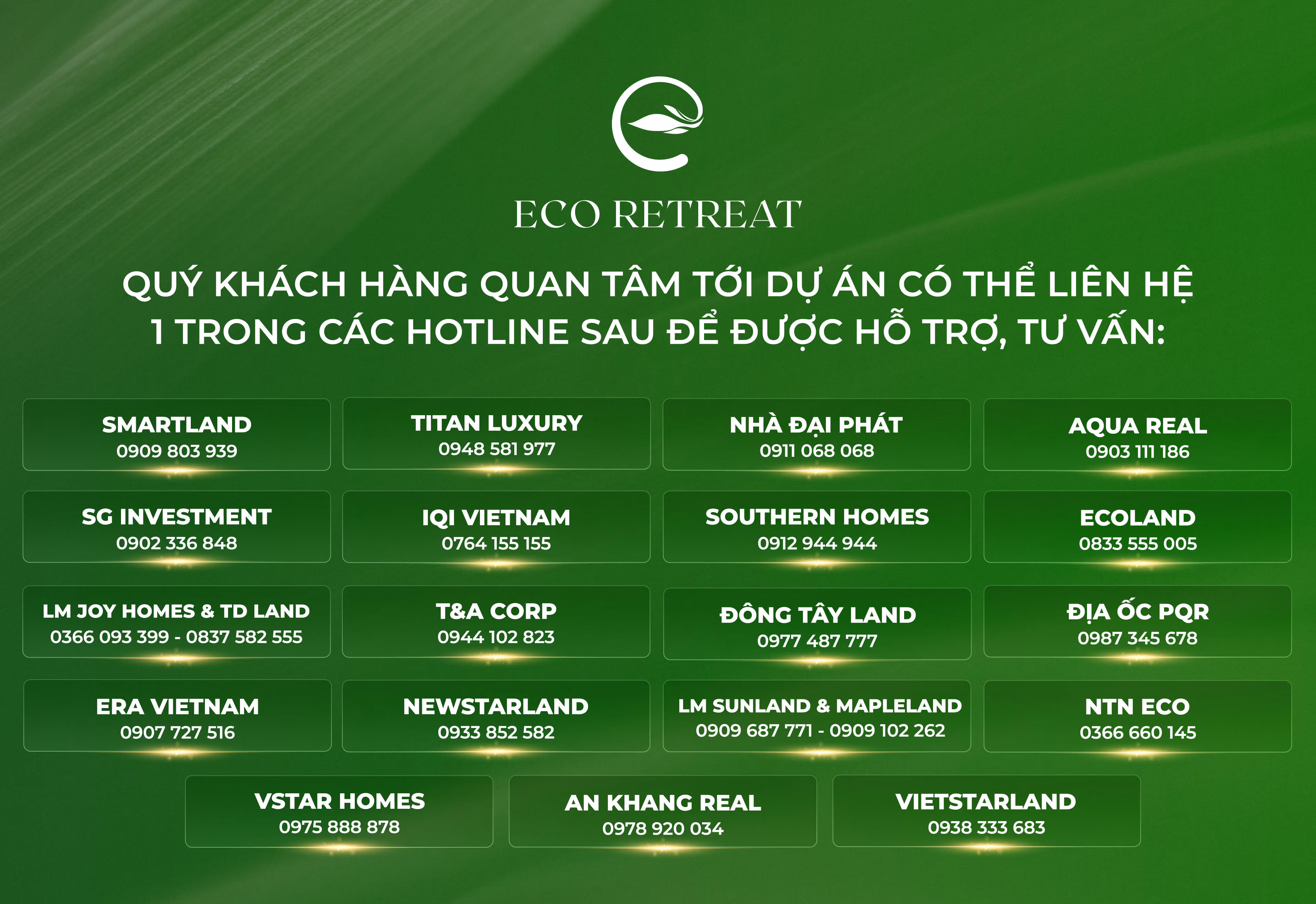 Độc giả quan tâm phân khu Rừng Mai của Mùa Lễ Hội liên hệ một trong các đại lý chính thức Eco Retreat để được thông tin, tư vấn.