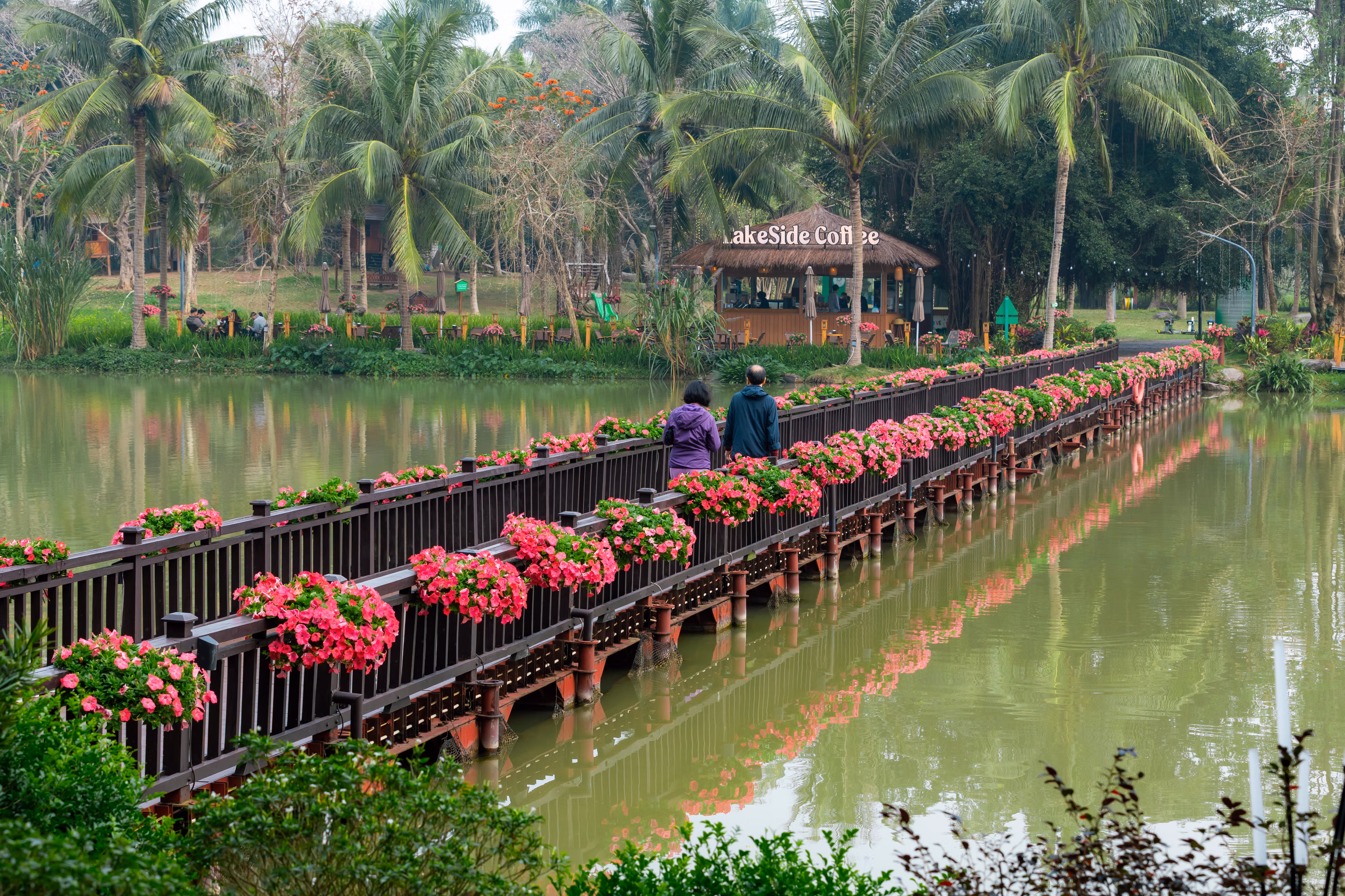 Giữa triệu cây xanh của Eco Retreat (220ha, Bến Lức, Tây Ninh), không gian trải nghiệm thương mại kết hợp điểm check in ngoài trời được tăng thêm phần hấp dẫn khi sắc hoa xuân bắt đầu nở rộ. Công viên Hồ Thiên Nga cũng đã chính thức mở cửa đón người dân địa phương và du khách đến trải nghiệm, check in mùa xuân giữa sắc xanh retreat (trị liệu, phục hồi, tái tạo).