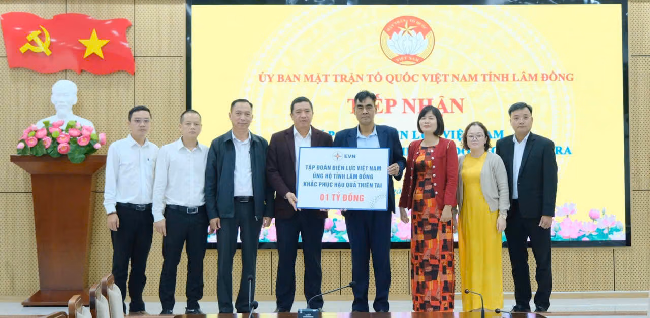 Sáng 24/11, thừa ủy quyền EVN, ông Phan Sỹ Duy - Bí thư Đảng ủy, Giám đốc Công ty Điện lực Lâm Đồng đã đại diện trao số tiền 1 tỷ đồng đến Ủy ban MTTQ Việt Nam tỉnh Lâm Đồng nhằm hỗ trợ địa phương khắc phục hậu quả sau thiên tai. Phó Chủ tịch Ủy ban MTTQ Việt Nam tỉnh Lâm Đồng Bon Yô Soan đã đại diện tiếp nhận khoản hỗ trợ này.