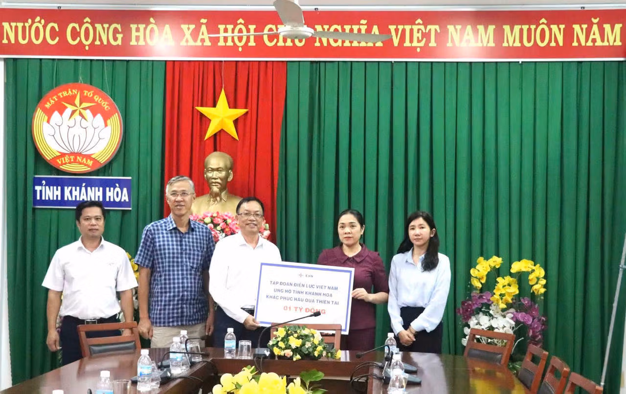 Chiều 21/11 vừa qua, thừa ủy quyền Tập đoàn Điện lực Việt Nam (EVN), ông Nguyễn Cao Ký – Chủ tịch HĐQT Công ty CP Điện lực Khánh Hòa, đại diện EVN trao 1 tỷ đồng hỗ trợ tỉnh Khánh Hòa khắc phục hậu quả mưa lũ. Khoản hỗ trợ được chuyển đến Ủy ban MTTQ Việt Nam tỉnh Khánh Hòa nhằm chung tay cùng địa phương sớm ổn định đời sống nhân dân và tái thiết sau thiên tai.