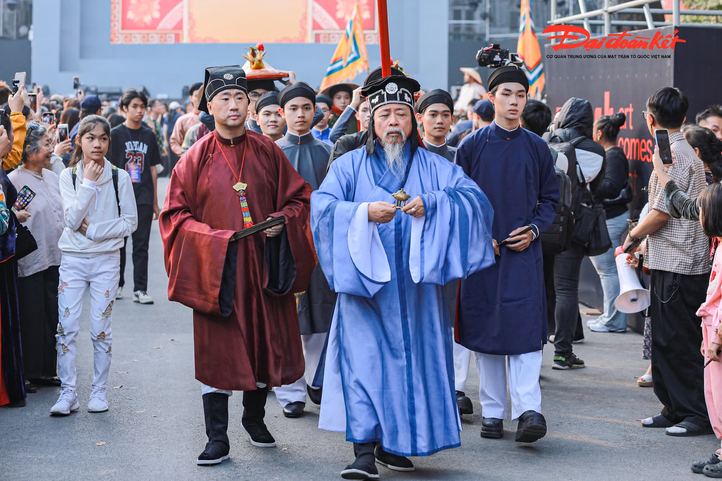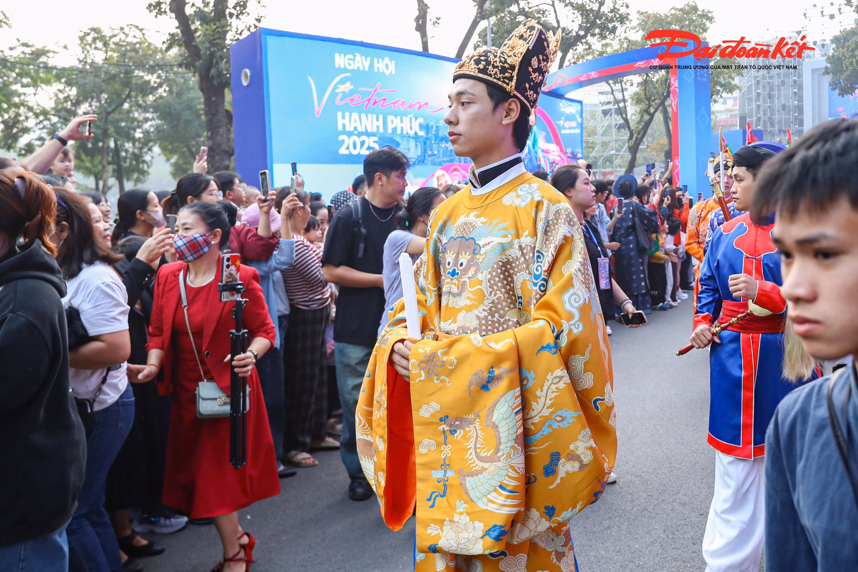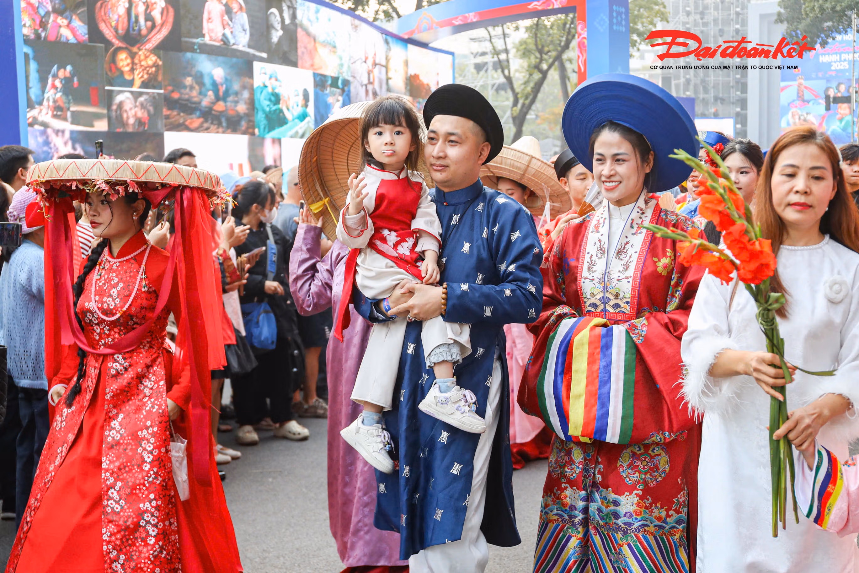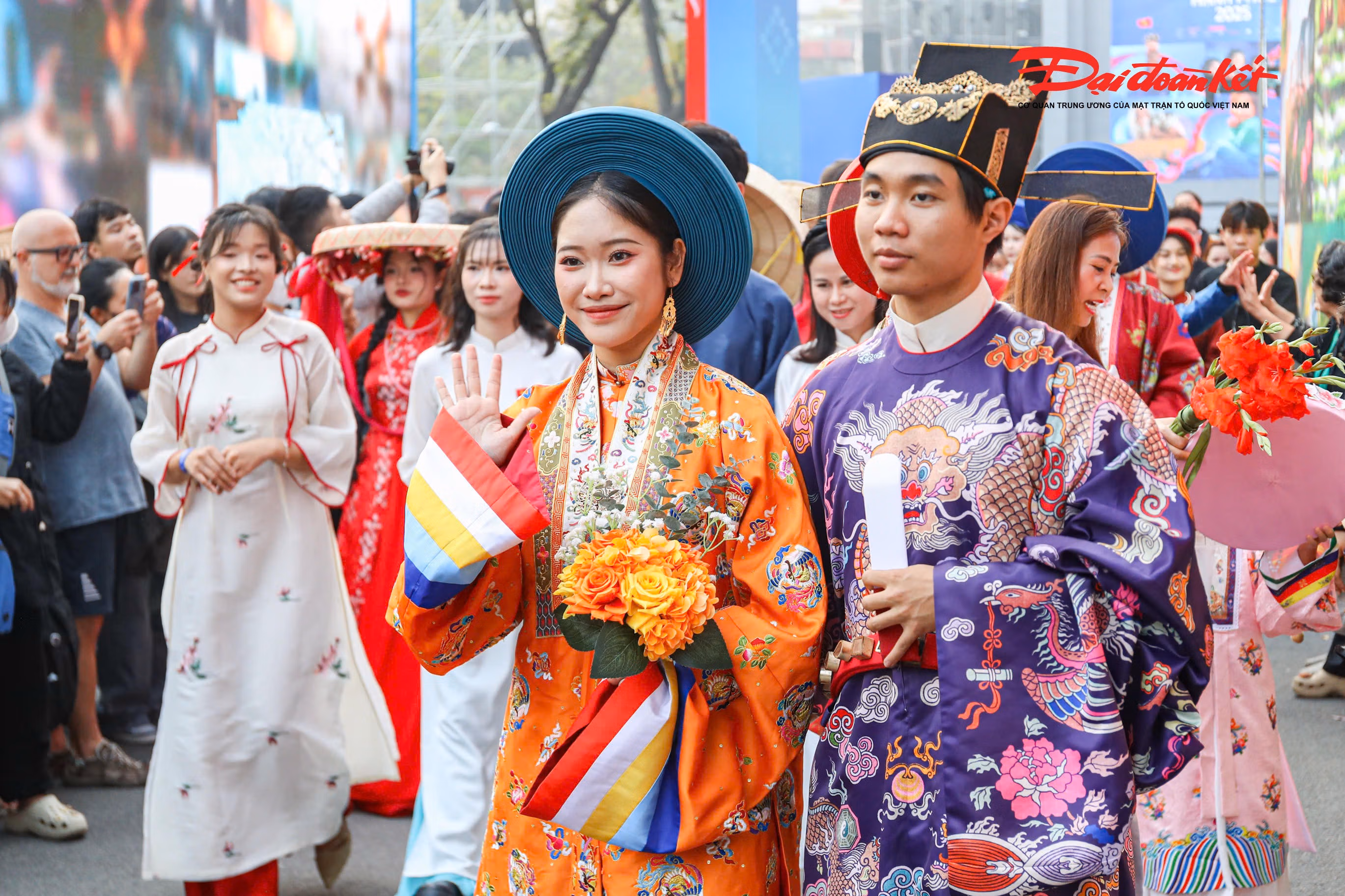 Chiều 7/12, không gian phố đi bộ Hồ Gươm trở nên rực rỡ và náo nhiệt hơn thường ngày khi khoảng 800 người trong trang phục truyền thống Việt Nam cùng nhau tái hiện nghi lễ cưới xưa. Sự kiện thu hút đông đảo người dân và du khách, tạo nên điểm nhấn văn hóa đặc sắc giữa trung tâm Thủ đô trong những ngày đầu đông.