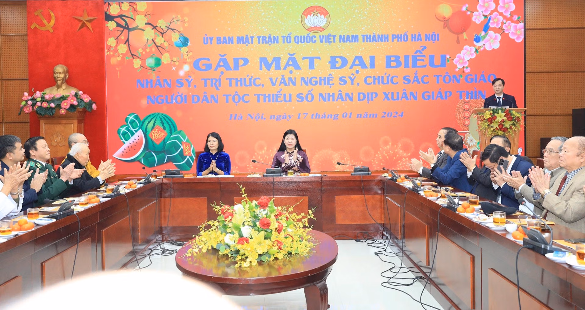 Trước mắt, trong dịp Tết Nguyên đán Giáp Thìn, Ban Thường trực Uỷ ban MTTQ Việt Nam thành phố Hà Nội đề nghị các cụ, các vị tiếp tục tuyên truyền, vận động nhân dân, các tín đồ tôn giáo, đồng bào có đạo thực hiện các quy định về tổ chức lễ hội, các hoạt động tín ngưỡng, tôn giáo, không để xảy ra tình trạng mê tín dị đoan trên địa bàn thành phố; tham gia chăm lo an sinh xã hội để mọi người, mọi nhà đều được hưởng Tết vui tươi, an toàn, tiết kiệm.