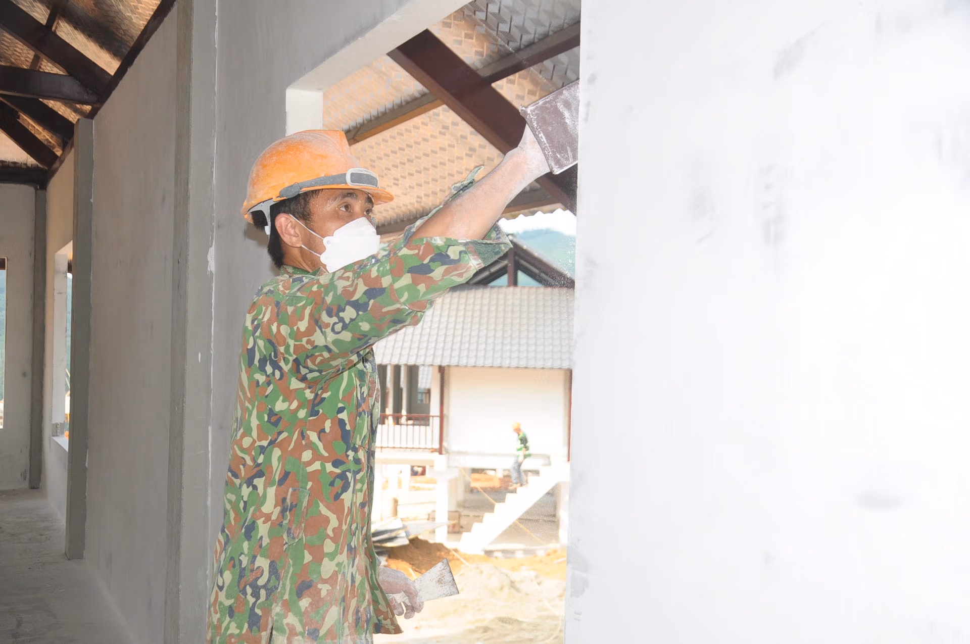 Trên khu đất bằng phẳng ở khu tái định cư Làng Nủ (xã Phúc Khánh, huyện Bảo Yên, tỉnh Lào Cai) cả chục ngôi nhà mang kiến trúc đồng bào Tày sạch đẹp đã được lợp mái. Cạnh đó, nhiều ngôi nhà khác cũng đang được gấp rút thi công...