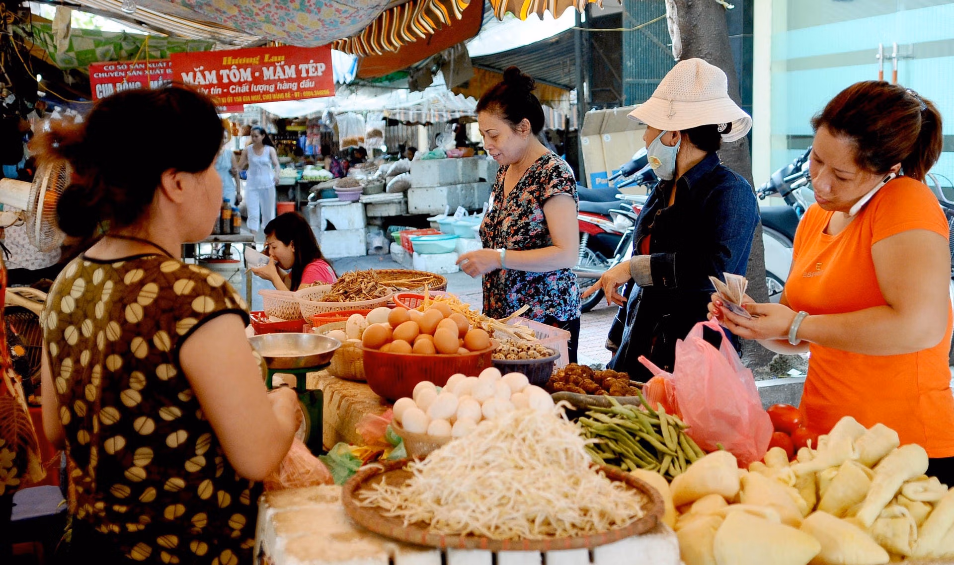 Ghi nhận thực tế của phóng viên tại các chợ truyền thống, giá nhiều mặt hàng thực phẩm như tôm, thịt, cá, rau, trái cây... ít dao động trong vòng một tháng nay, sau khi đã lên cao. Chưa kể do ảnh hưởng của mưa bão mấy ngày qua, giá rau củ tươi, hải sản tươi sống lại tăng tiếp.