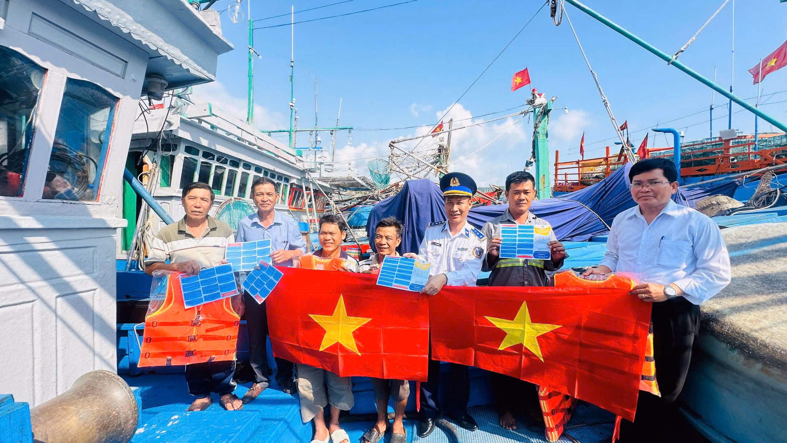 Tại các tàu cá, đoàn đã trao tặng 150 lá cờ Tổ quốc và 150 áo phao, góp phần tiếp thêm động lực để ngư dân yên tâm sản xuất trên biển. Hoạt động thể hiện sự gắn bó, đồng hành của lực lượng Cảnh sát biển Việt Nam, đặc biệt là Bộ Tư lệnh Vùng Cảnh sát biển 2, với bà con ngư dân trong phát triển kinh tế biển gắn với bảo vệ chủ quyền, an ninh quốc gia trên biển.