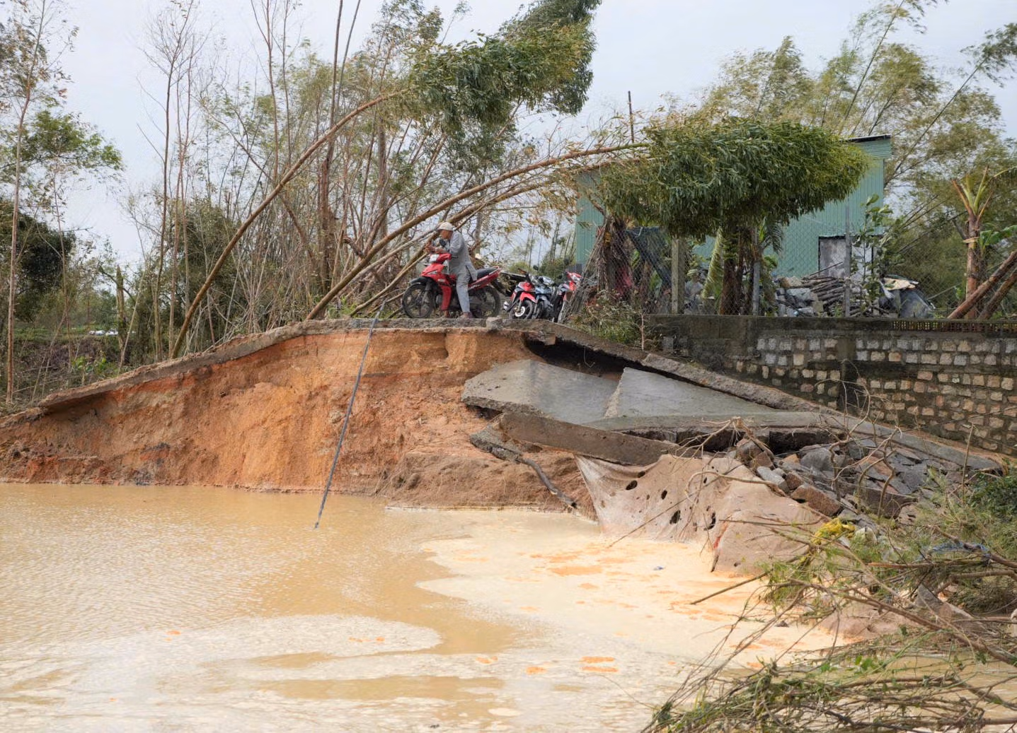 Ghi nhận của chúng tôi, tại đê thôn Vân Hội 1 bị lũ phá vỡ khoảng 90m, mặt bê tông vỡ vụn, cây cối đổ. Trong khi đó, đê Luật Lễ vỡ một đoạn 30m, khiến 660 hộ với hơn 2.500 người bị cô lập, nhiều tài sản bị cuốn trôi trong đợt mưa lũ vừa qua.