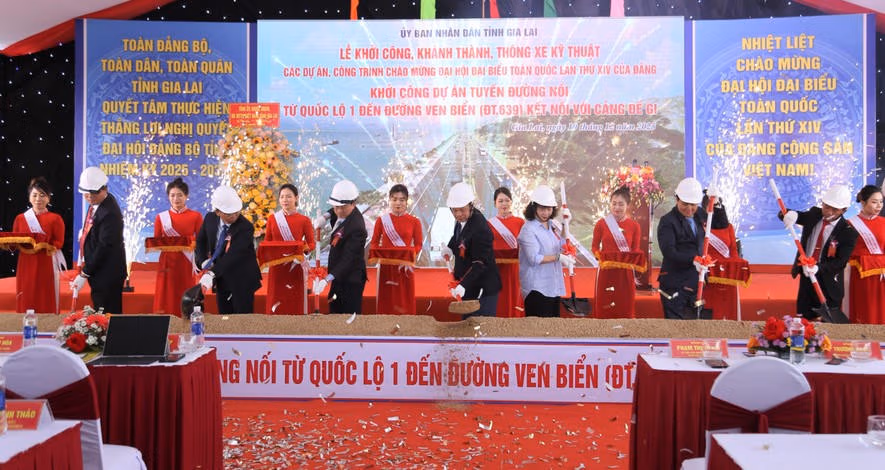 Sáng 19/12, UBND tỉnh Gia Lai tổ chức khởi công Dự án tuyến đường nối từ Quốc lộ 1 đến đường ven biển (ĐT.639) kết nối với cảng Đề Gi. Đây là 1 trong 10 công trình, dự án trọng điểm chào mừng Đại hội đại biểu toàn quốc lần thứ XIV của Đảng.