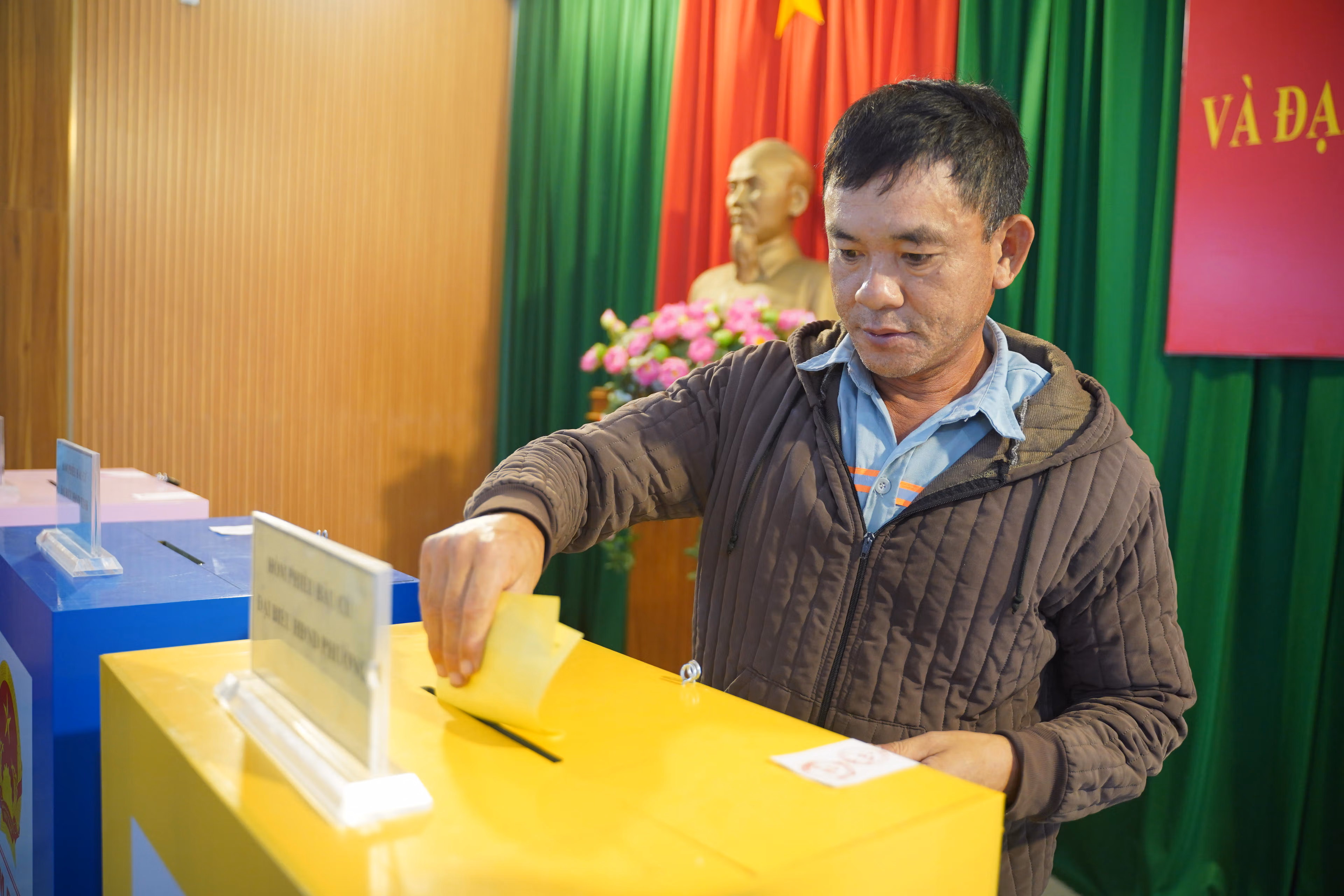 Sau lễ khai mạc, các đại biểu và cử tri đã tiến hành bỏ phiếu trong không khí trang nghiêm, trật tự. Tại khu vực bỏ phiếu số 17, công tác tổ chức được chuẩn bị chu đáo, từ trang trí khánh tiết, bố trí khu vực bỏ phiếu đến chuẩn bị đầy đủ tài liệu, phiếu bầu, bảo đảm hoạt động bỏ phiếu diễn ra thuận lợi, đúng quy định.