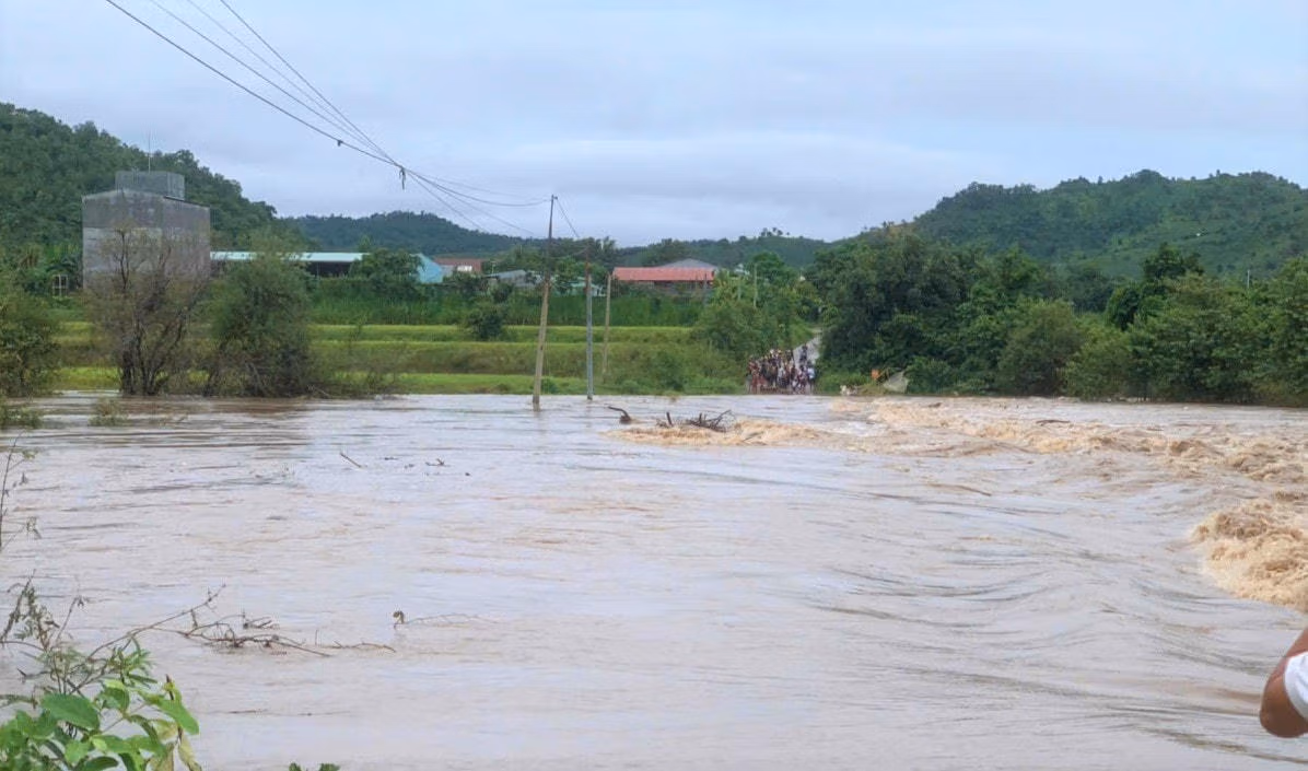 Trước đó, trưa 29/8, do mưa lớn, ngầm tràn bị ngập làm trôi đất đá, cô lập người dân thôn. Sau khi nước rút, xã huy động hơn 50 người san gạt, gia cố ngầm để thông tuyến. Tuy nhiên, ngầm vừa được gia cố thì nay lại tiếp tục ngập sâu 1,5 m.