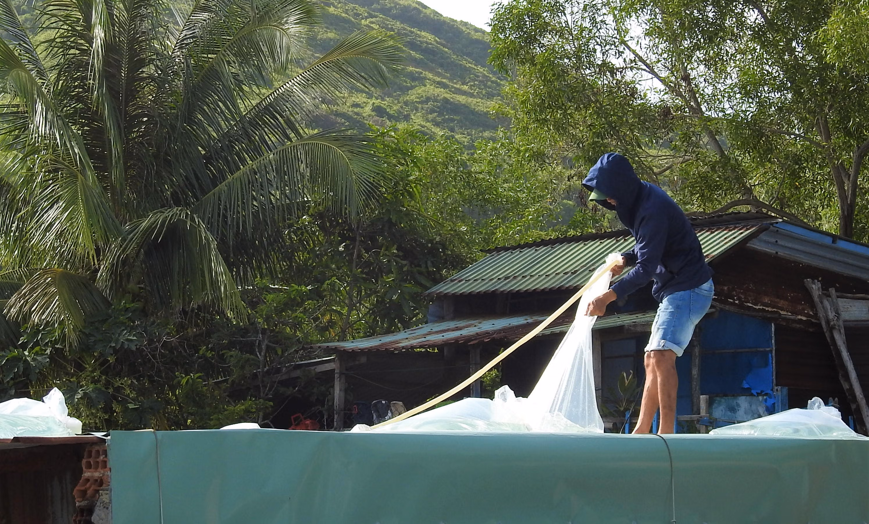 “Nếu bão nhỏ thì còn ở lại được, chứ bão mạnh như dự báo thì ở vùng ven biển này rất nguy hiểm. Nhà cấp 4 như chúng tôi phải chèn mái bằng đá hoặc bình nước, chèn cửa để tránh gió,” ông Chinh nói.