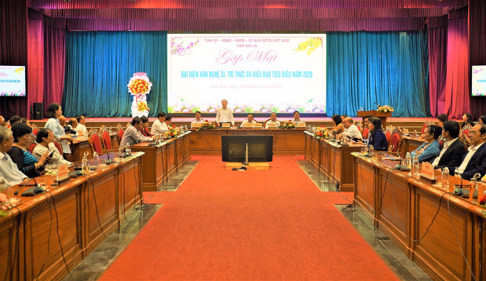 Dự và chủ trì buổi gặp mặt có Bí thư Tỉnh ủy Thái Đại Ngọc; Chủ tịch UBND tỉnh Phạm Anh Tuấn; Phó Bí thư Tỉnh ủy Châu Ngọc Tuấn; Phó Bí thư Tỉnh ủy, Chủ tịch Ủy ban MTTQ Việt Nam tỉnh Nguyễn Ngọc Lương cùng đại diện lãnh đạo các sở, ban, ngành tỉnh và 150 đại biểu đại diện văn nghệ sĩ, tri thức và kiều bào tiêu biểu tỉnh Gia Lai.