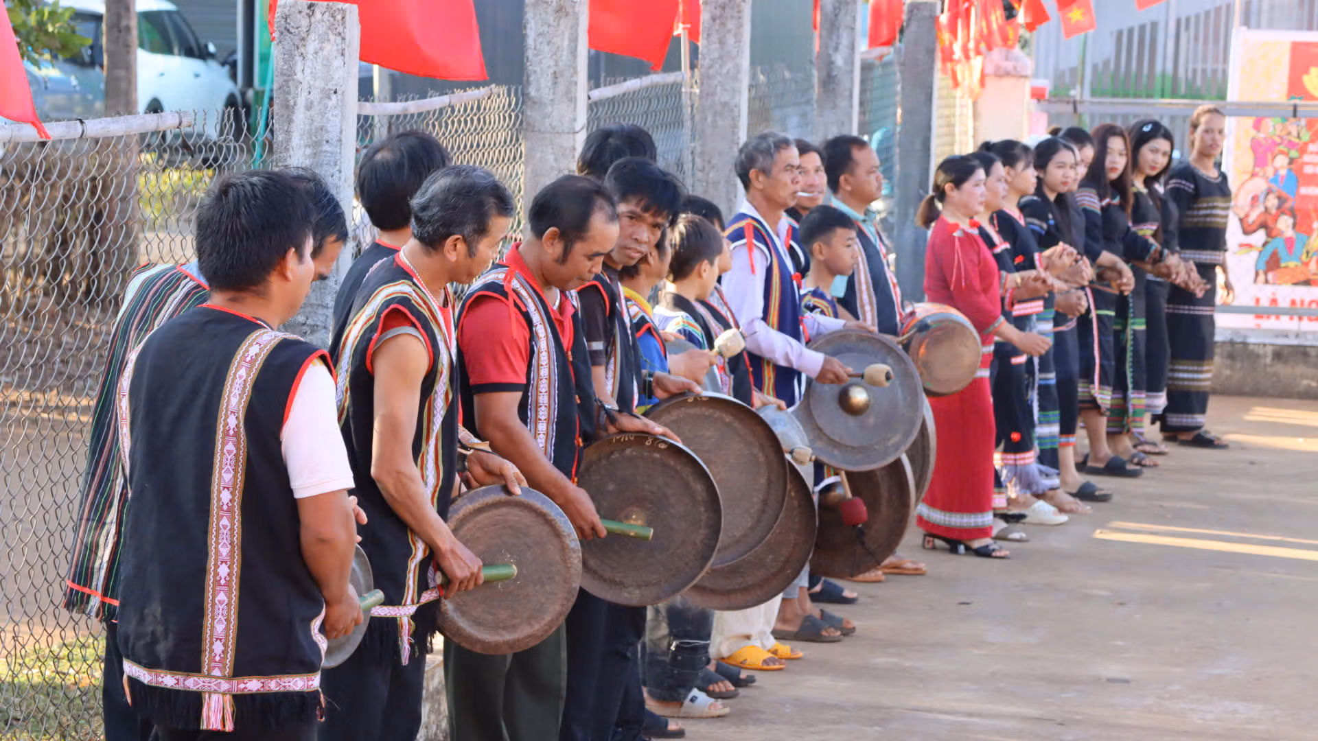 Các khu vực bầu cử được trang trí cờ hoa, băng rôn, khẩu hiệu trang trọng; công tác tổ chức được chuẩn bị chu đáo, tạo điều kiện thuận lợi để người dân tham gia bỏ phiếu.