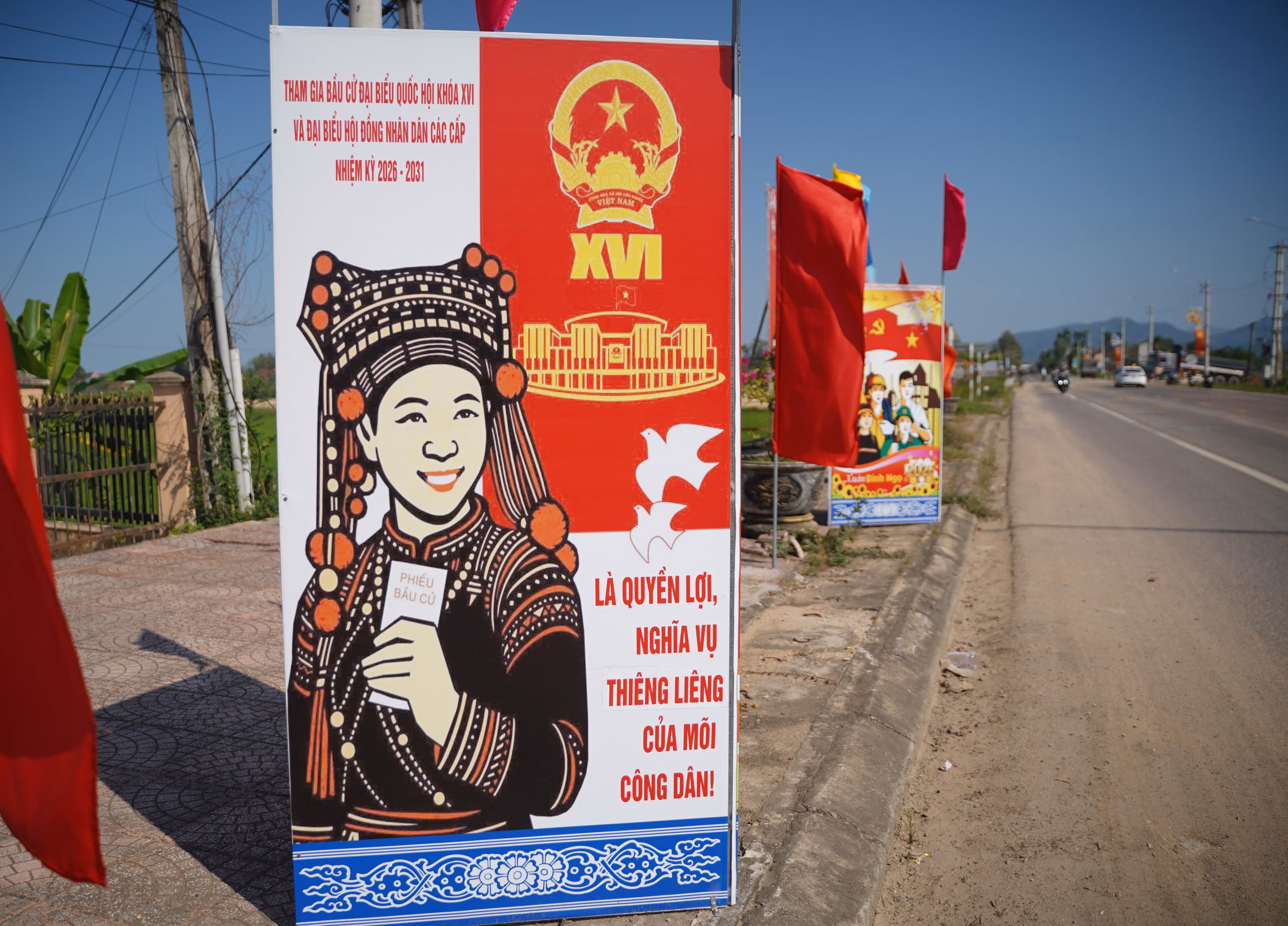 Cờ hoa, pano, biểu ngữ chào mừng ngày bầu cử ĐBQH khóa XVI và đại biểu HĐND các cấp nhiệm kỳ 2026- 2031 được treo trang trọng, góp phần tạo nên không khí trang nghiêm, phấn khởi lan tỏa từ khu vực trung tâm đến từng khu dân cư.