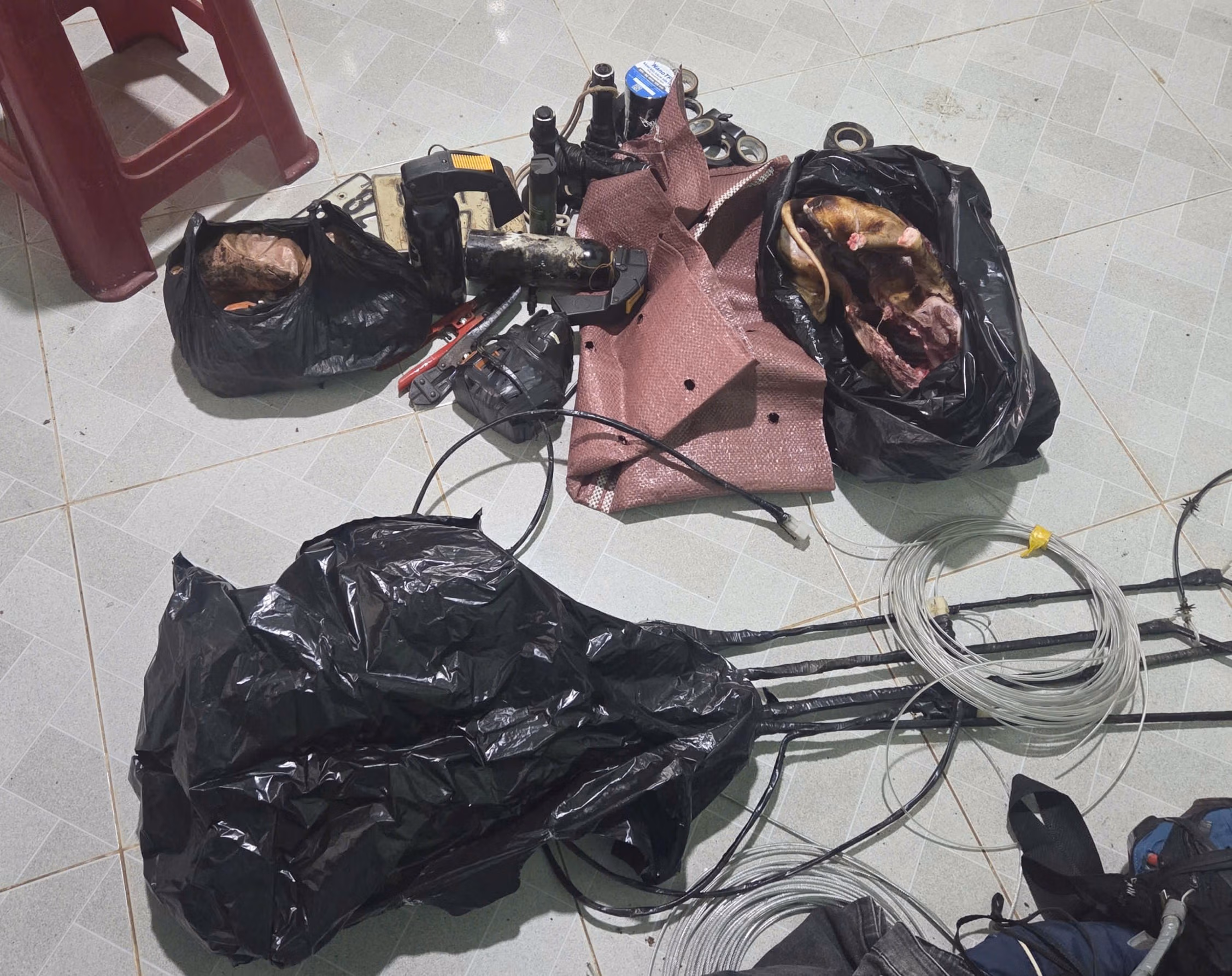 Khám xét nơi ở và các điểm liên quan, lực lượng Công an thu giữ nhiều công cụ dùng để trộm chó như bộ kích điện, thòng lọng, hơn 1kg ớt bột cùng 4 xe máy các loại.
