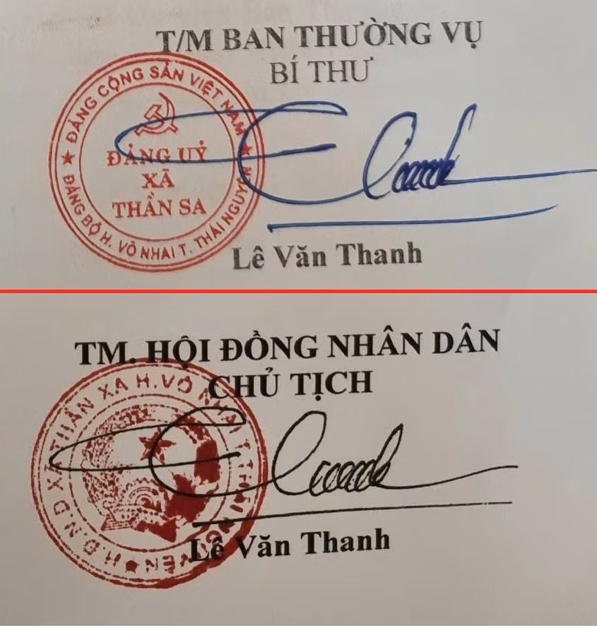 Ông Lê Văn Thanh, Bí thư Đảng ủy, Chủ tịch HĐND xã Thần Sa, chia sẻ thêm: “Khi ký tên, đóng dấu văn bản thuộc khối Đảng, tôi dùng con dấu tên Thần Sa; nhưng với văn bản thuộc HĐND thì lại phải dùng con dấu tên Thần Xa.”