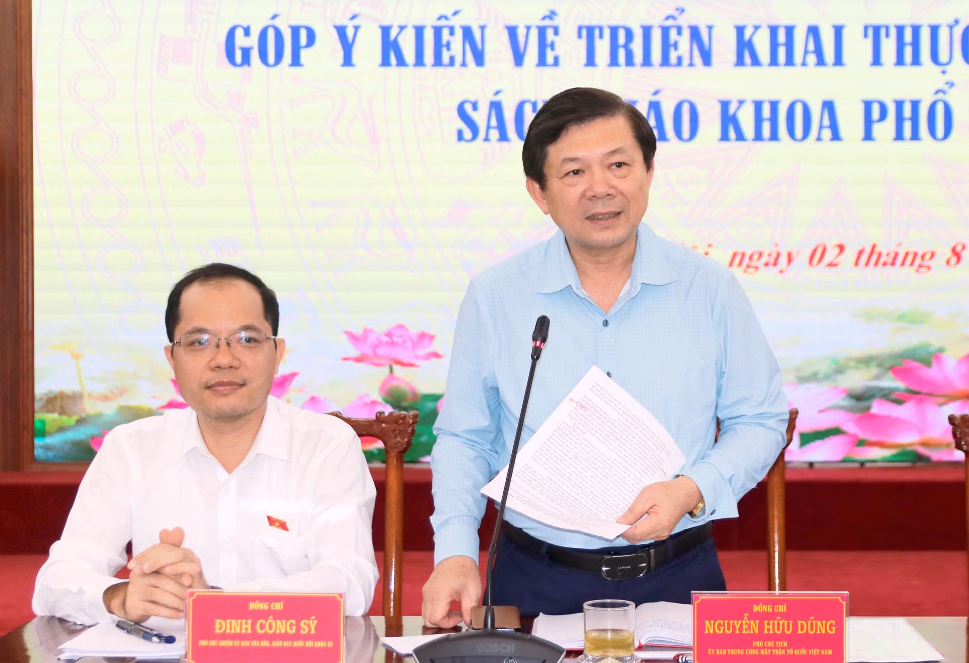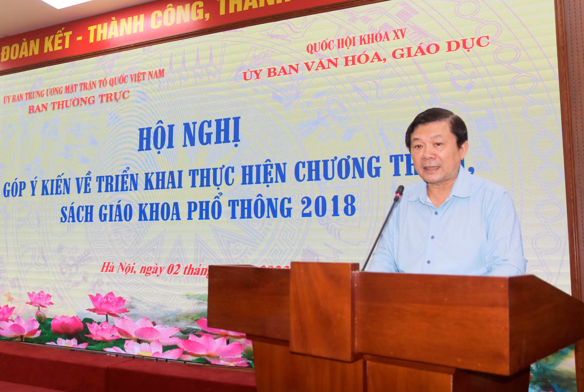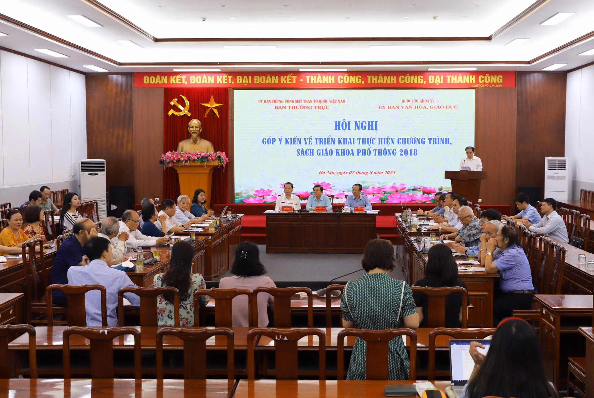 Ngày 2/8, tại Hà Nội, Ban Thường trực UBTƯ MTTQ Việt Nam phối hợp với Ủy ban Văn hóa Giáo dục của Quốc hội tổ chức Hội nghị góp ý kiến về triển khai thực hiện chương trình, sách giáo khoa (SGK) phổ thông 2018.
