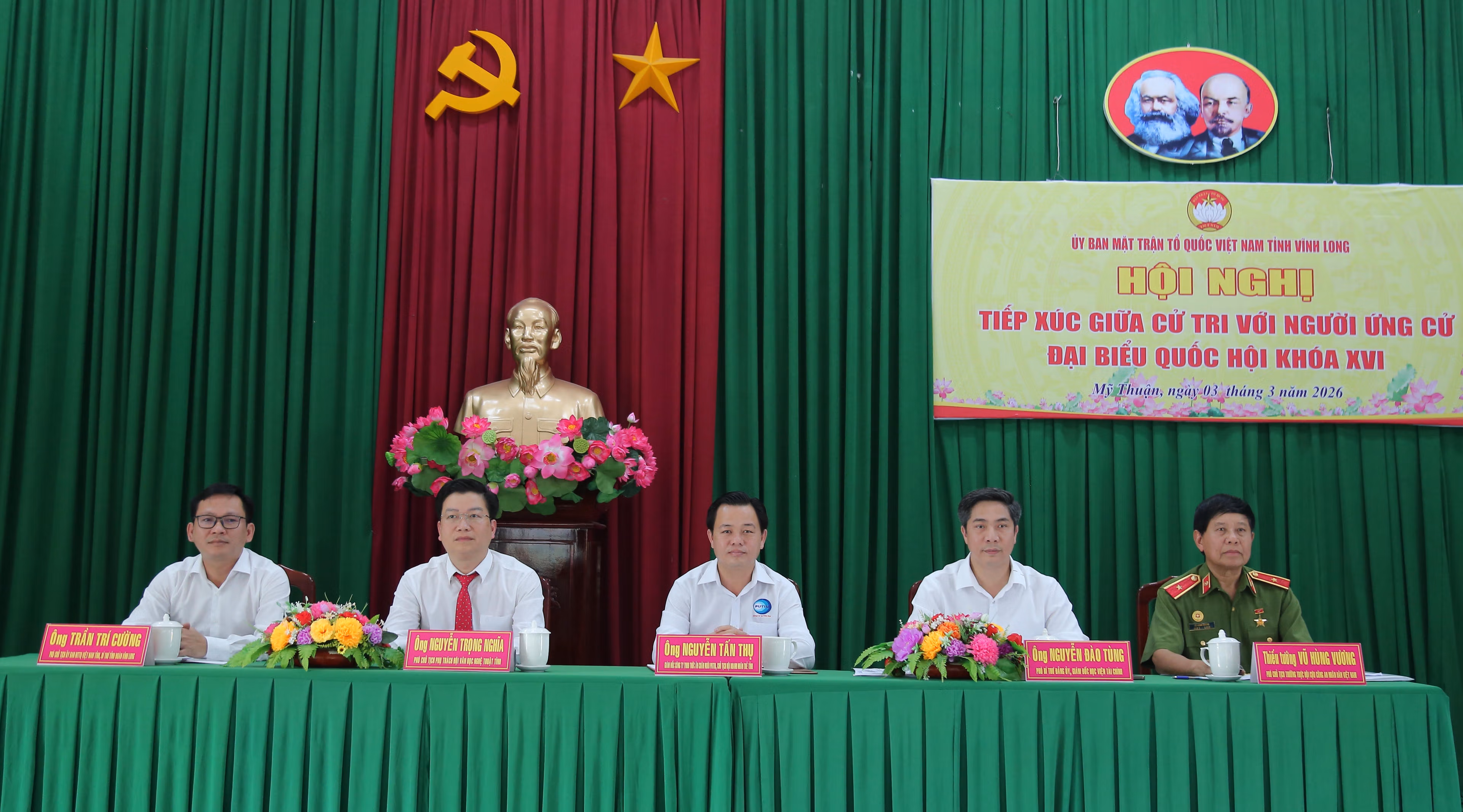 Ngày 3/3, ông Nguyễn Đào Tùng, Ủy viên UBTU MTTQ Việt Nam, Phó Chủ nhiệm Hội đồng Tư vấn kinh tế của UBTW MTTQ Việt Nam, Ủy viên Ban Chấp hành Đảng bộ Bộ Tài chính, Giám đốc Học viện Tài chính - Bộ Tài chính cùng các ứng cử viên ứng cử Đại biểu Quốc hội khóa XVI, nhiệm kỳ 2026 – 2031, đơn vị bầu cử số 2 tiếp xúc cử tri tại xã Tân Qưới, Tân Lược, Mỹ Thuận tỉnh Vĩnh Long.