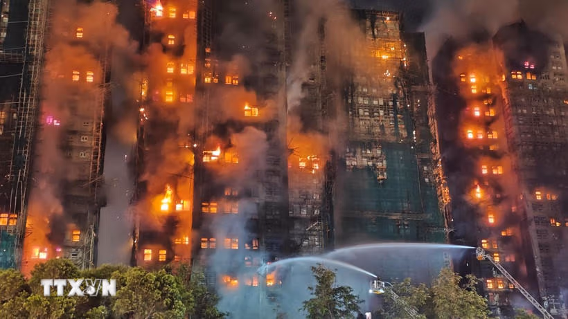 Vụ cháy xảy ra tại Tòa nhà Vương Phúc, một khu phức hợp tám tòa nhà được xây dựng vào những năm 1980 ở quận Đại Bộ, phía Đông Bắc Hong Kong, khởi phát từ chiều 26/11 và nhanh chóng lan ra 7 tòa nhà gần đó.