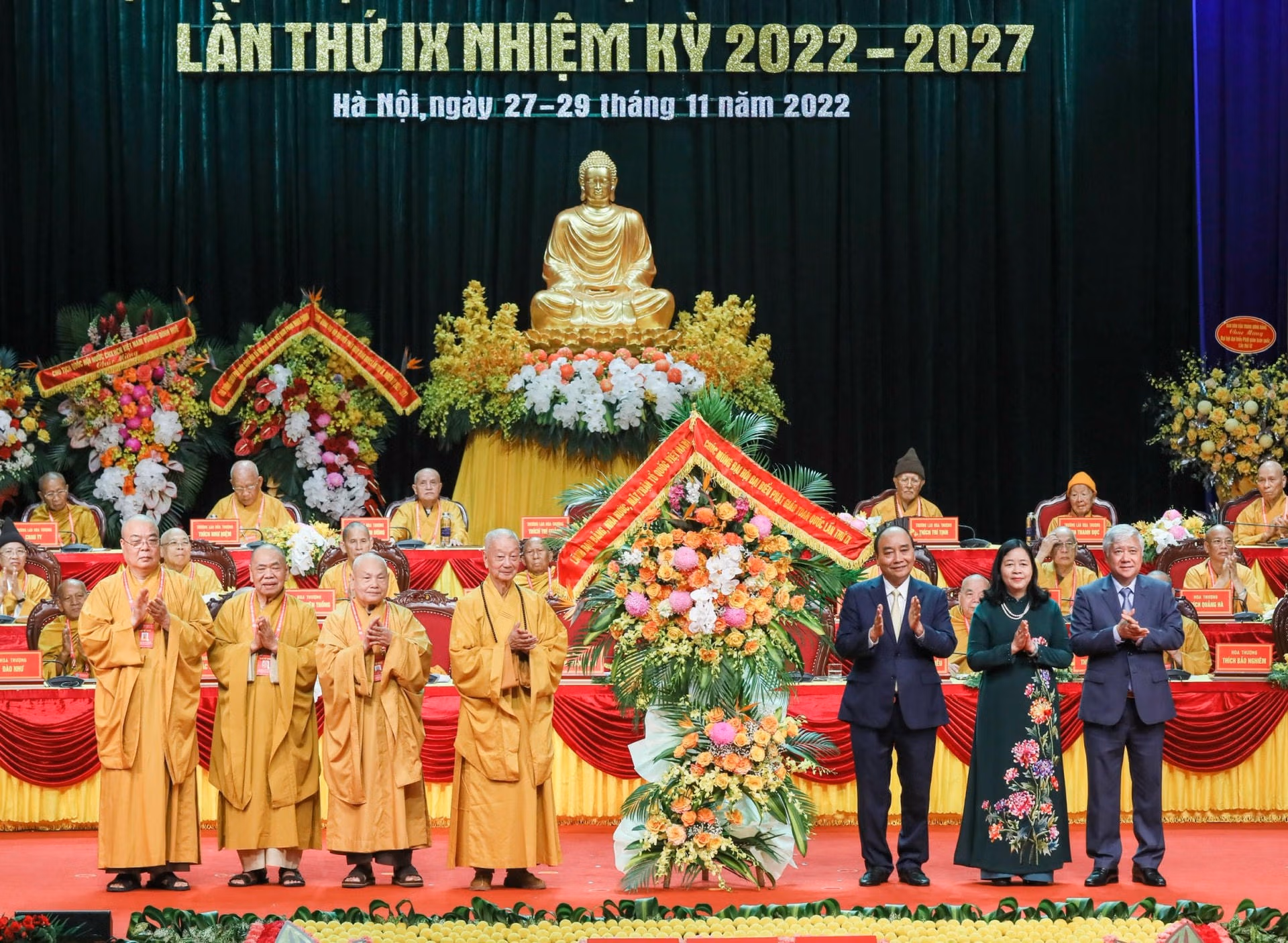 Thay mặt lãnh đạo Đảng, Nhà nước, Chủ tịch nước Nguyễn Xuân Phúc gửi lời chúc tốt đẹp nhất tới Đại hội đại biểu Phật giáo toàn quốc lần thứ IX, nhiệm kỳ 2022-2027; đồng thời nhấn mạnh đây là sự kiện trọng đại của Phật giáo Việt Nam, đánh dấu bước phát triển mới của GHPG Việt Nam trong giai đoạn mới, thể hiện sự quan tâm của Đảng và Nhà nước ta đối với hoạt động của các tôn giáo có đường hướng hành đạo tích cực, gắn bó, đồng hành cùng dân tộc.