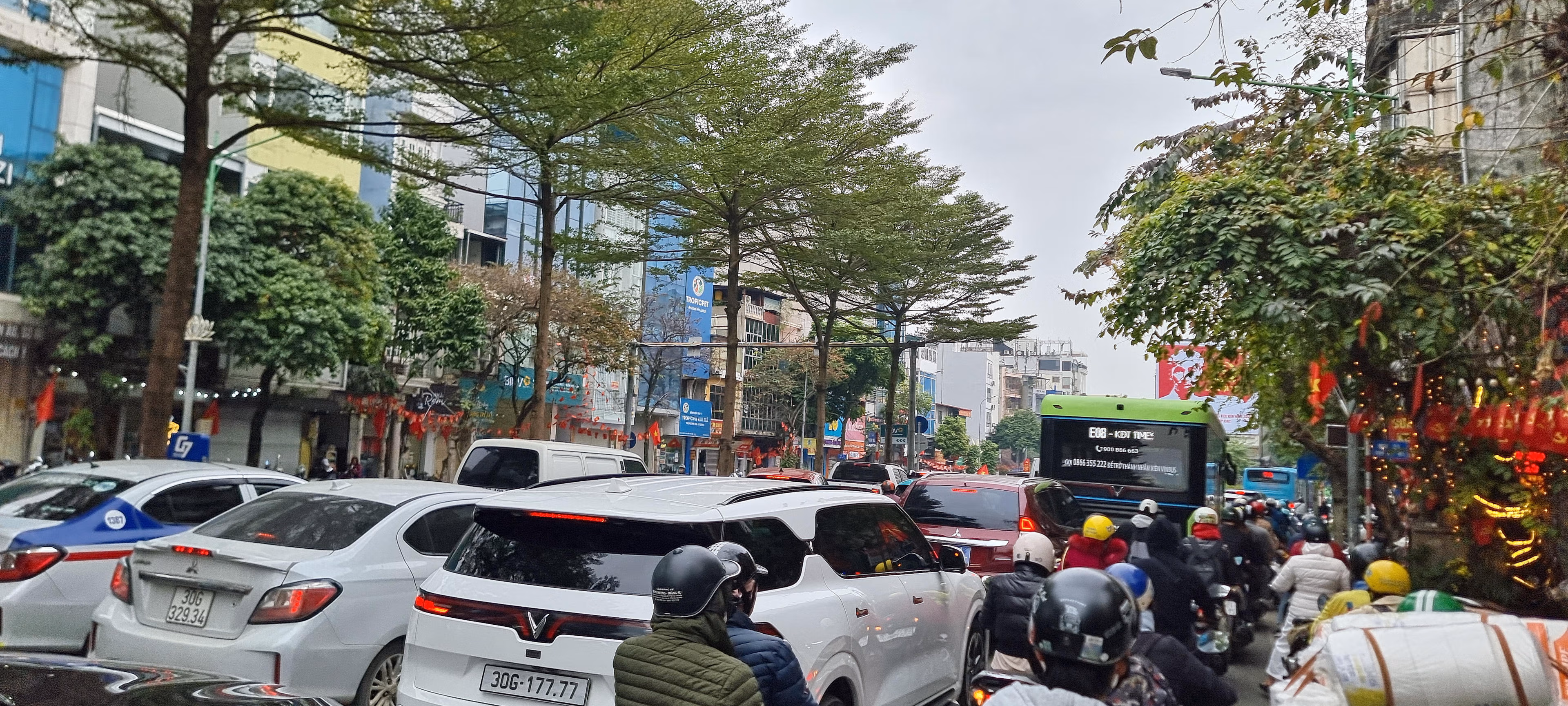 Qua ghi nhận thực tế của PV Báo Đại đoàn kết, những ngày cuối năm, áp lực giao thông đè nặng lên nhiều tuyến đường Hà Nội, khiến tình trạng ùn ứ xuất hiện từ sáng sớm khiến người dân di chuyển rất vất vả. Là tuyến đường xuyên tâm dẫn vào nội đô, trục đường Cầu Giấy - Nguyễn Thái Học, khung giờ 10 giờ sáng, 3 giờ chiều, vốn là khung giờ thấp điểm, song những ngày sát Tết (từ khoảng rằm tháng Chạp), thường xuyên xảy ra ùn tắc, người tham gia giao thông cứ ngỡ như mình đang ra đường vào thời gian giờ cao điểm…