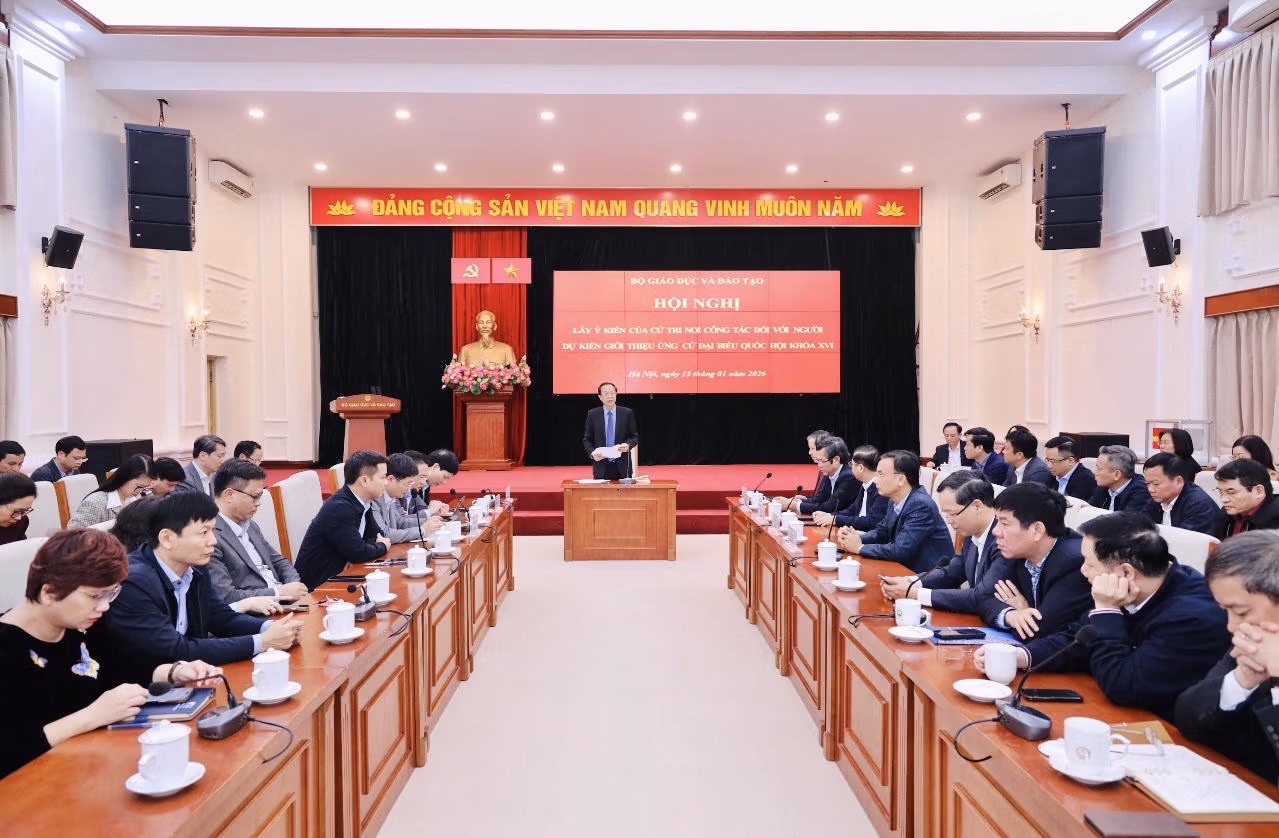 Ngày 15/1, Bộ GDĐT tổ chức hội nghị lấy ý kiến của cử tri nơi công tác đối với người dự kiến giới thiệu ứng cử đại biểu Quốc hội khóa XVI đối với đồng chí Nguyễn Kim Sơn, Ủy viên Trung ương Đảng, Bí thư Đảng ủy, Bộ trưởng Bộ GDĐT, đại biểu Quốc hội khóa XV, người được giới thiệu ứng cử đại biểu Quốc hội khóa XVI, nhiệm kỳ 2026-2031.