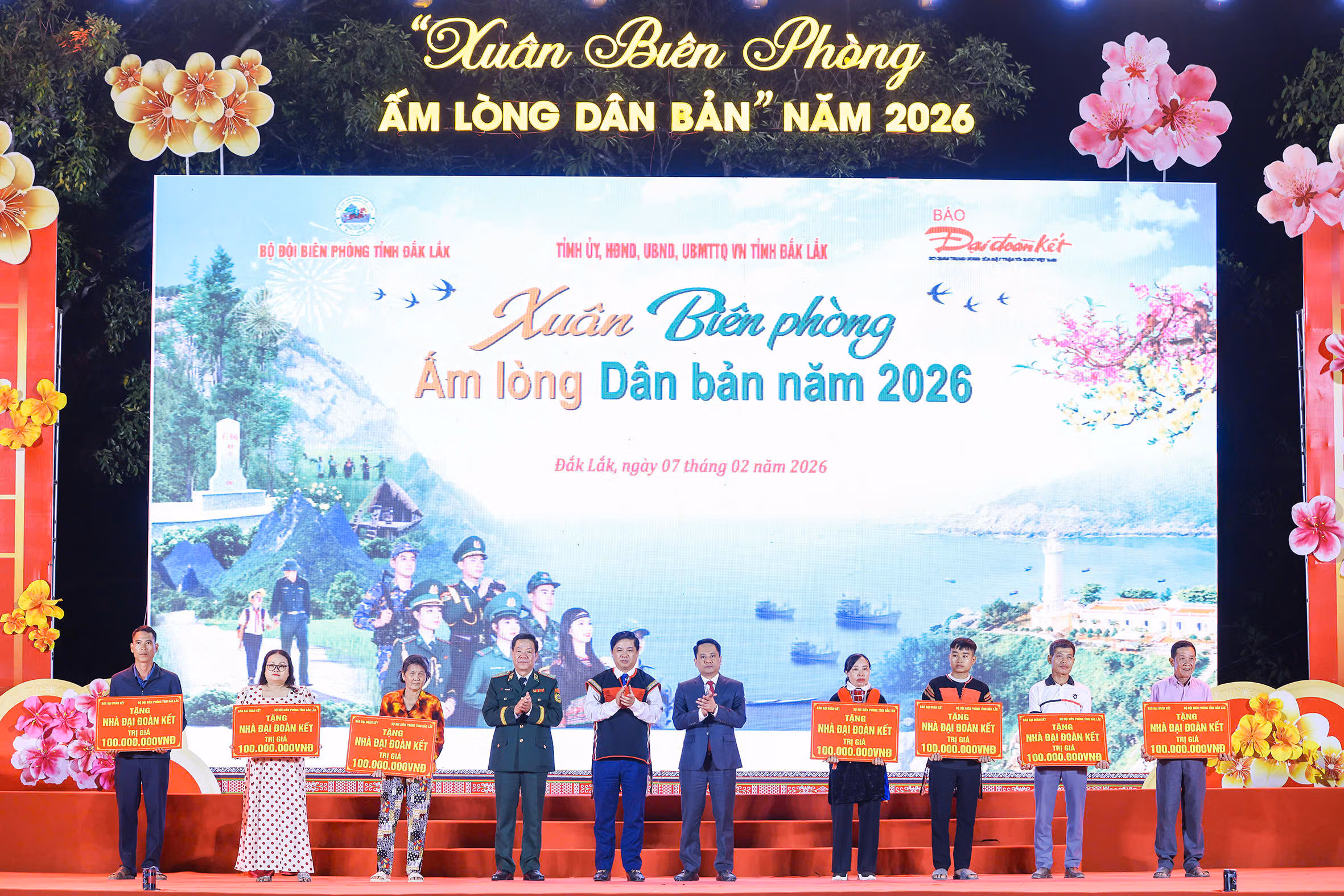 Tối 7/2, tại xã biên giới Buôn Đôn và Tuy An Đông (tỉnh Đắk Lắk), Báo Đại đoàn kết phối hợp với Tỉnh ủy, HĐND, UBND, Ủy ban MTTQ Việt Nam tỉnh và Bộ đội Biên phòng (BĐBP) tỉnh Đắk Lắk tổ chức khai mạc Chương trình “Xuân Biên phòng - Ấm lòng dân bản” năm 2026. Chương trình lan tỏa thông điệp nhân văn sâu sắc rằng giữ vững biên cương không chỉ bằng nhiệm vụ, mà bằng nghĩa tình Quân - Dân và sức mạnh đại đoàn kết toàn dân tộc.